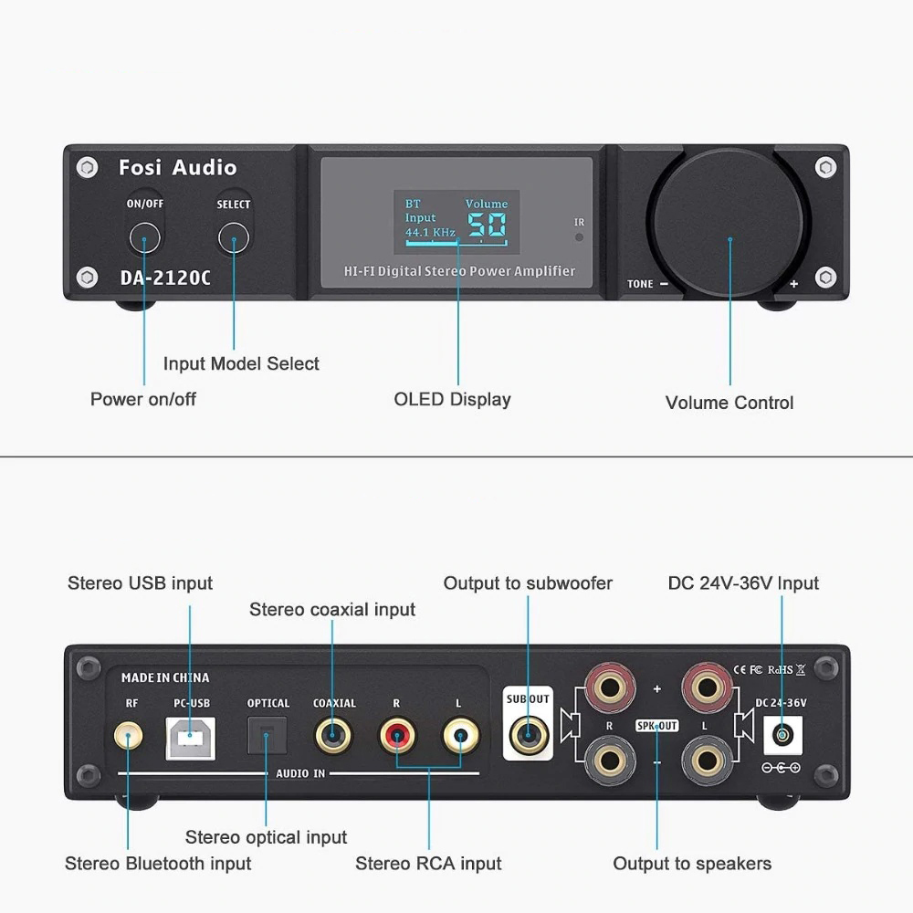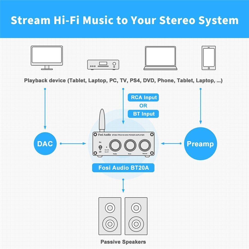 Беспроводной усилитель звука Fosi BT20 A100 Вт Bluetooth + Блок 24v