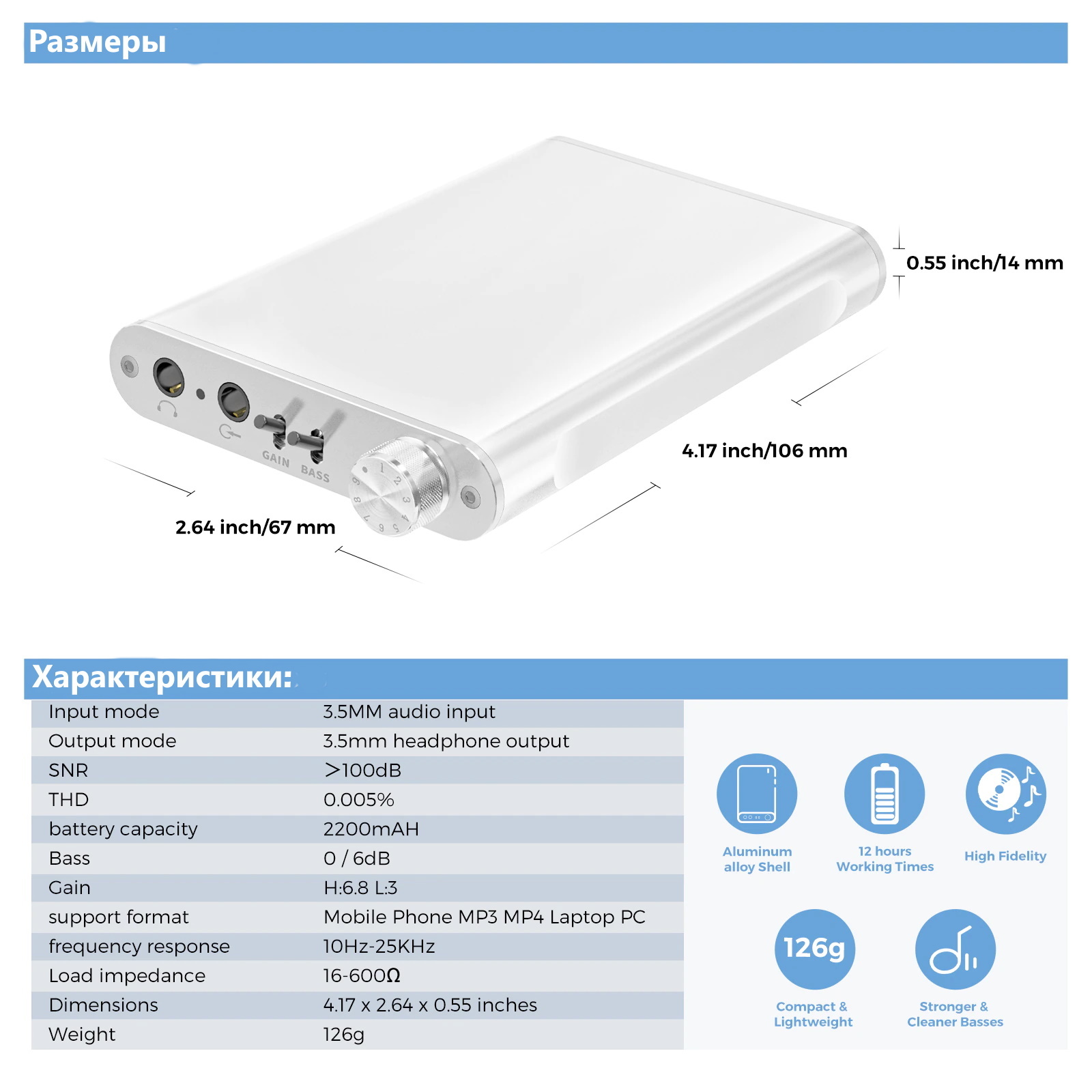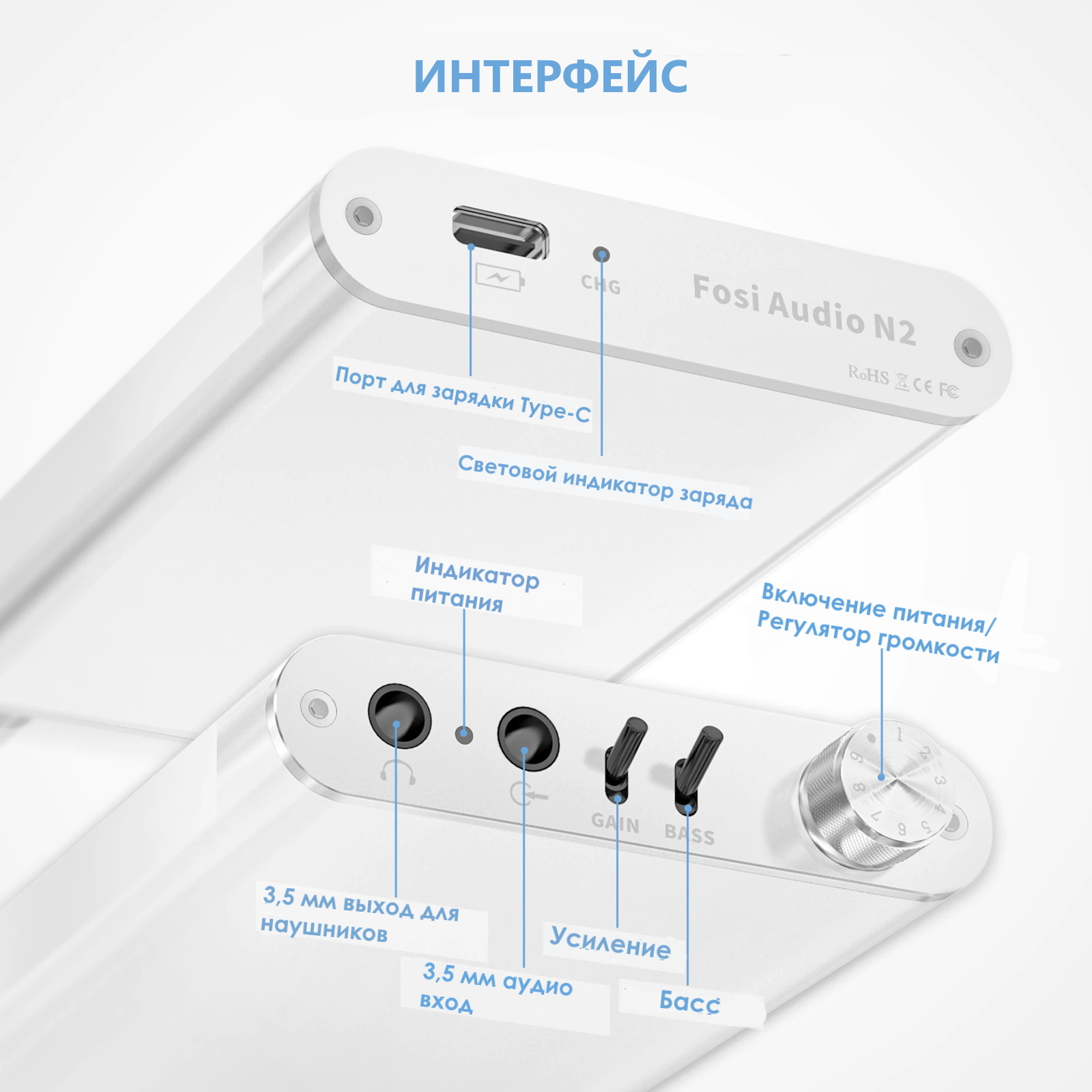 Портативный предусилитель Fosi Audio Phono N2 для наушников