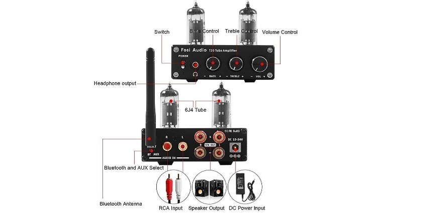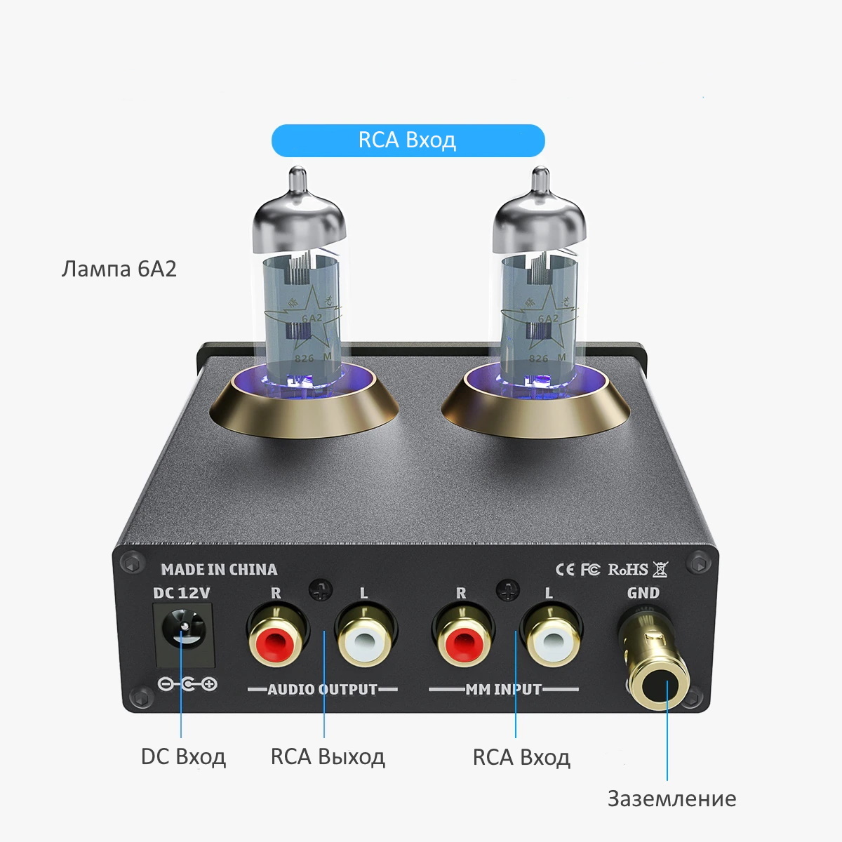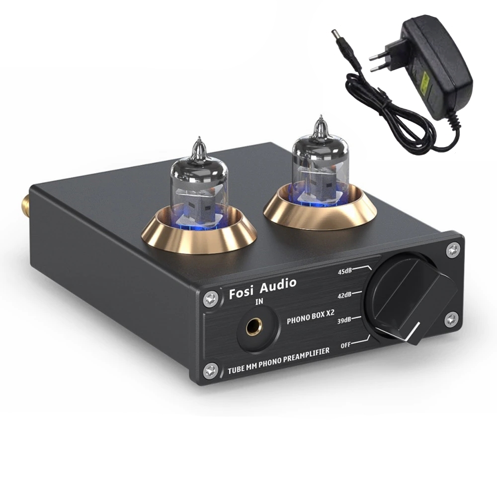 Ламповый предварительный усилитель Fosi Audio Phono Box X2 с блоком питания