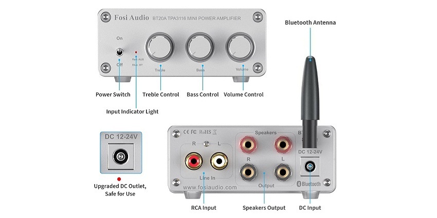 Аудио Bluetooth усилитель Fosi Audio BT20A серебристый