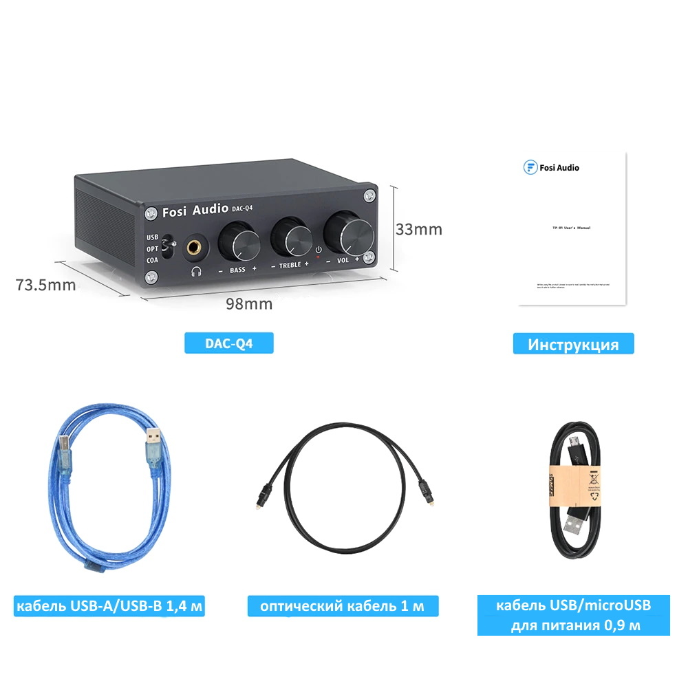 ЦАП с предварительным усилителем Fosi Audio DAC-Q4 USB, оптическое аудио S/PDIF