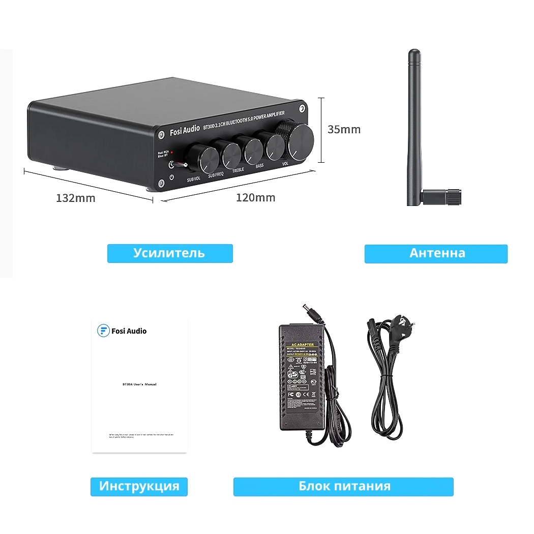 2.1 усилитель для колонок Fosi Audio BT30D Bluetooth 50 Вт с блоком питания