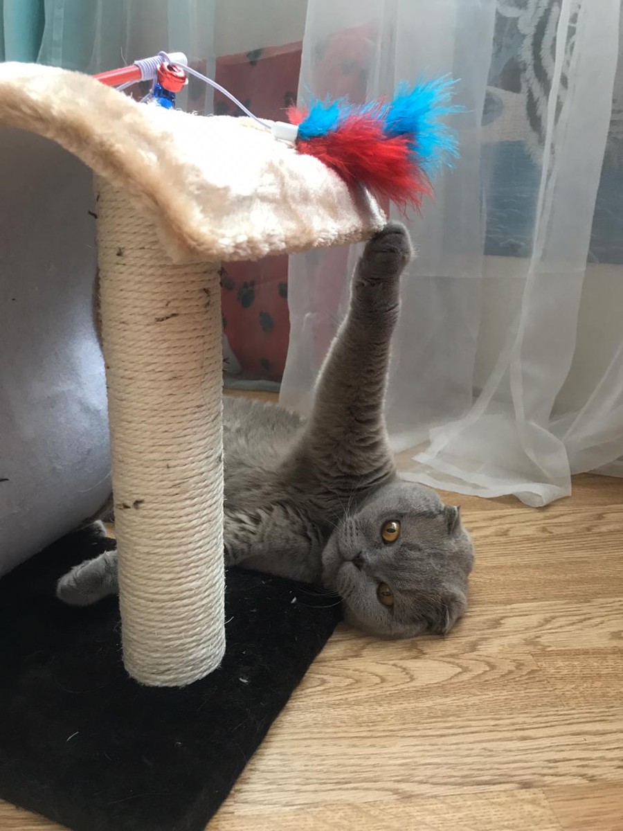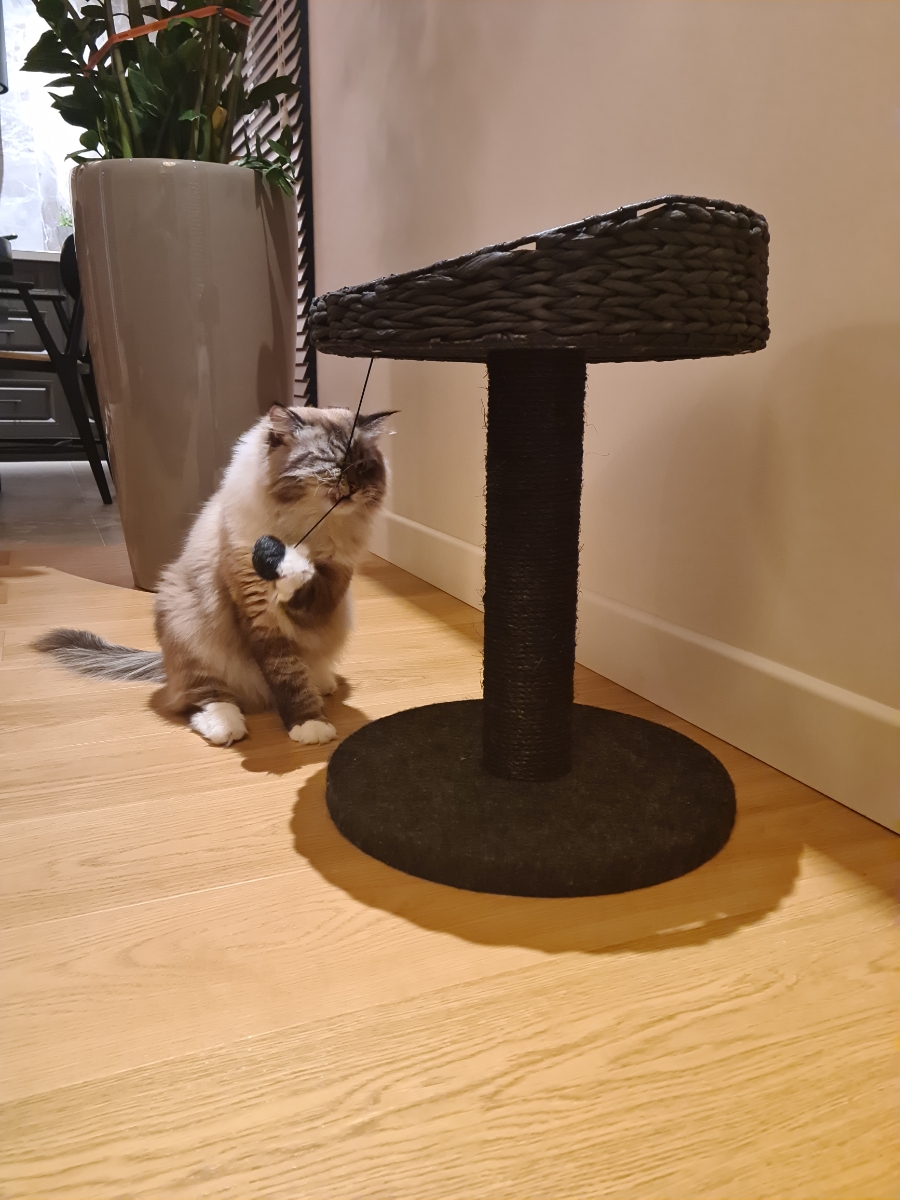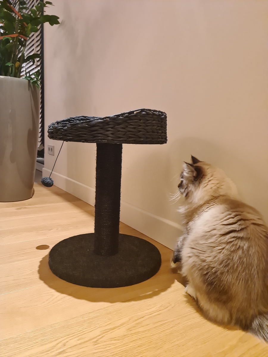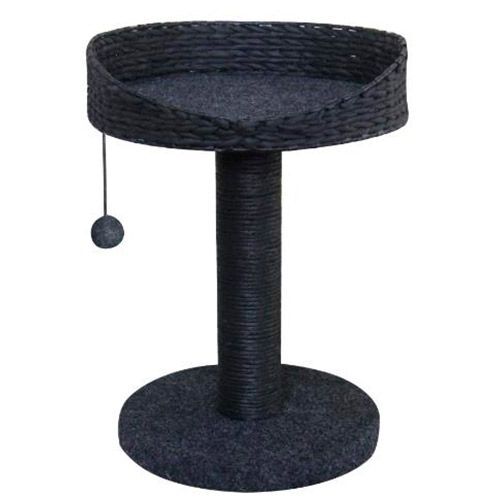 Когтеточка для кошек FOXIE Лежанка плетеная на столбике с игрушкой 35х35х52см серая