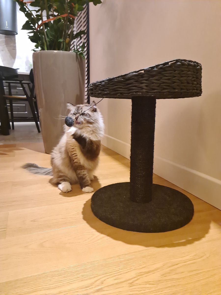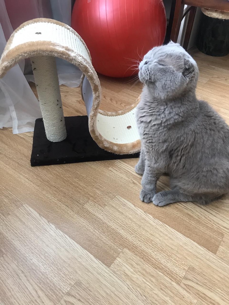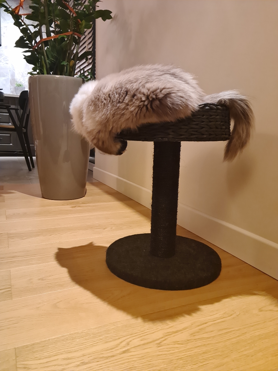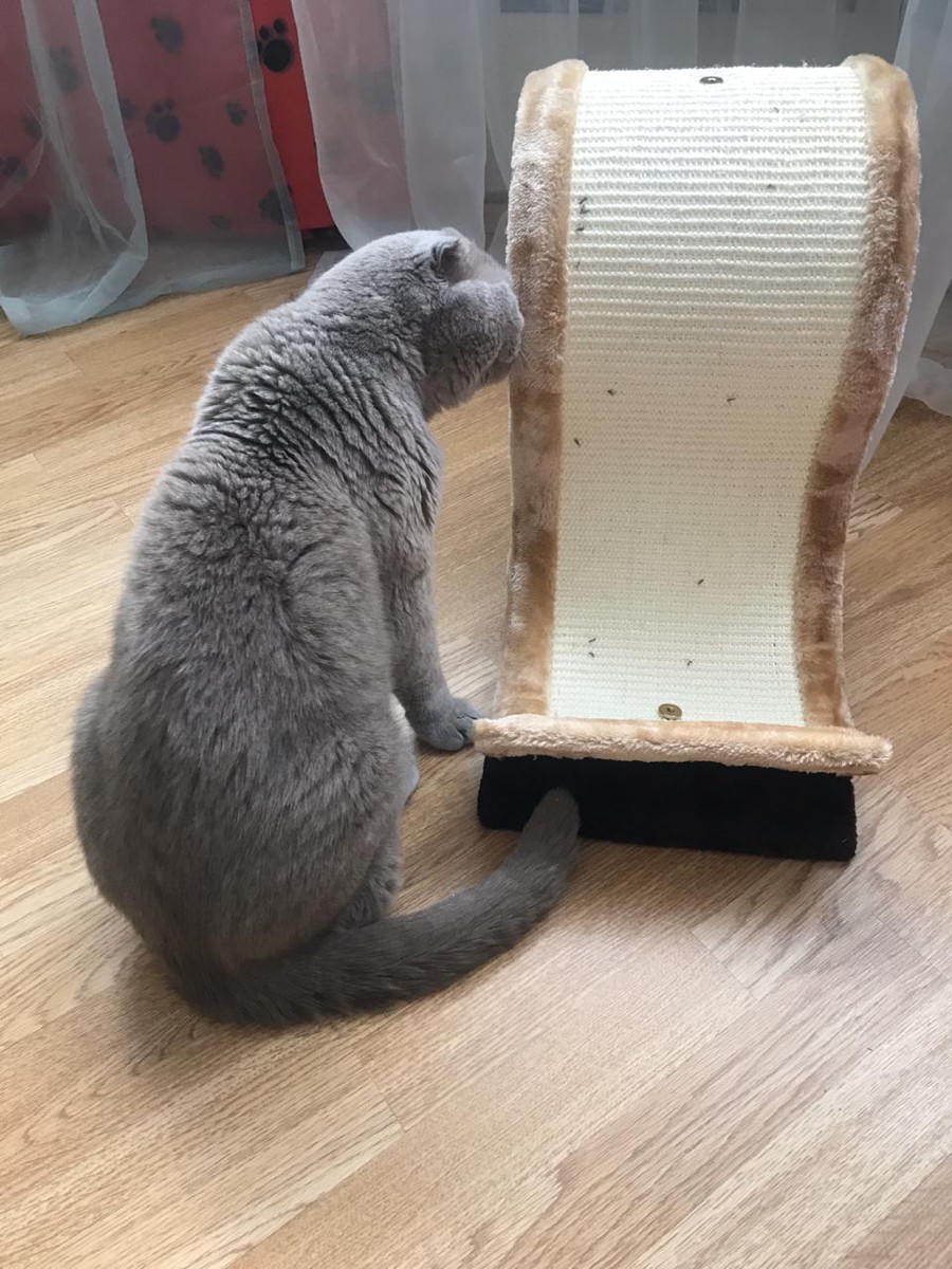 Когтеточка для кошек FOXIE Лежанка плетеная на столбике с игрушкой 35х35х52см серая