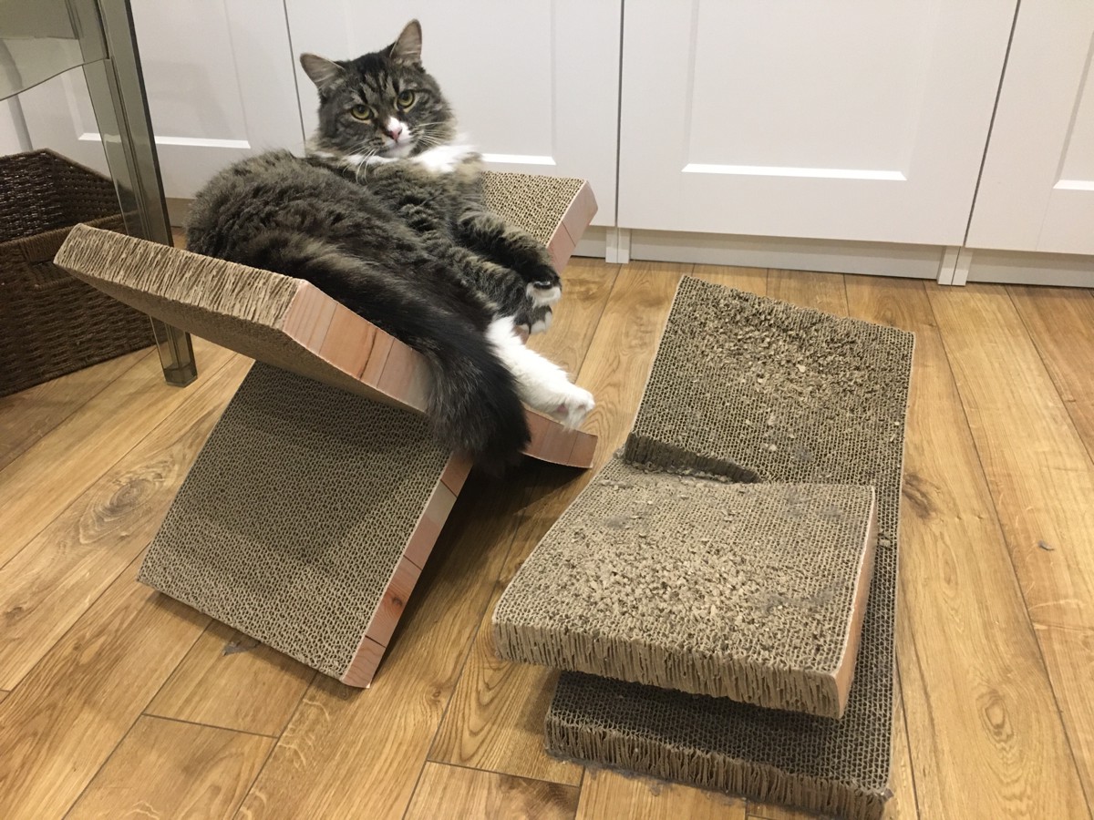 Когтеточка для кошек FOXIE Wood Print Лежанка Крест картон 48,5х24х8,5см