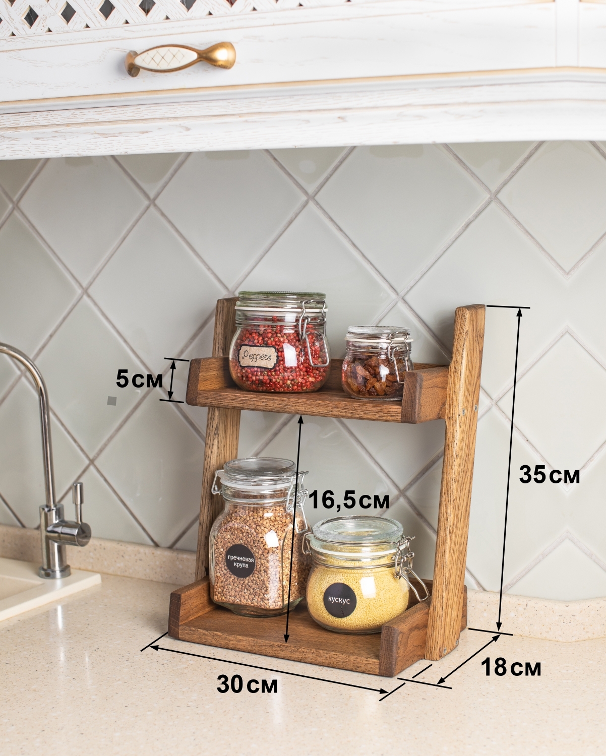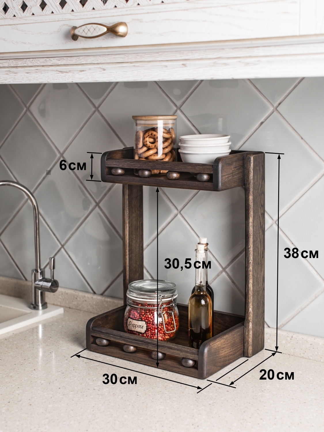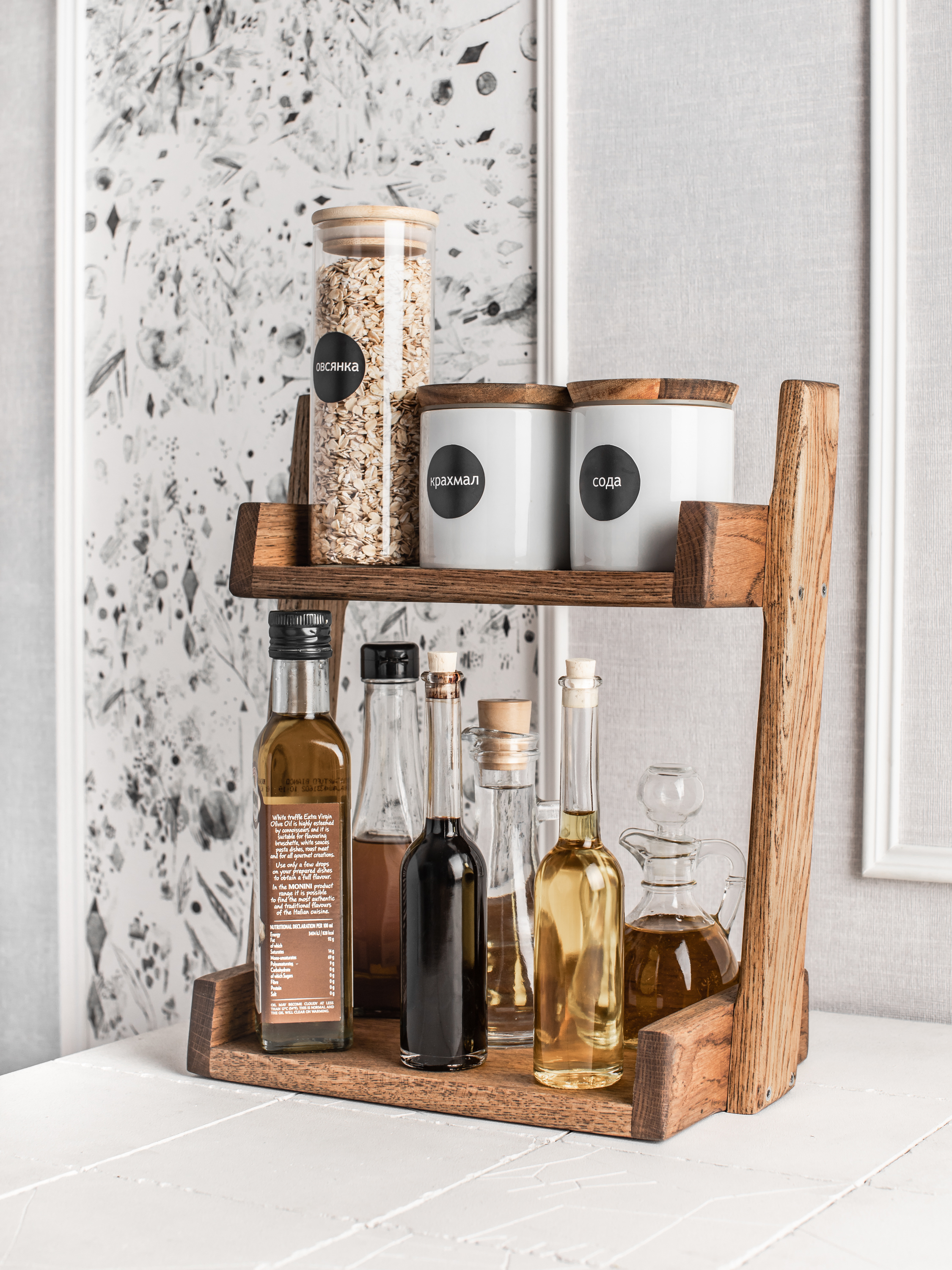 Этажерка с двумя полками из дуба, 2 секц., Дерево, Дуб, 30х18х35 см