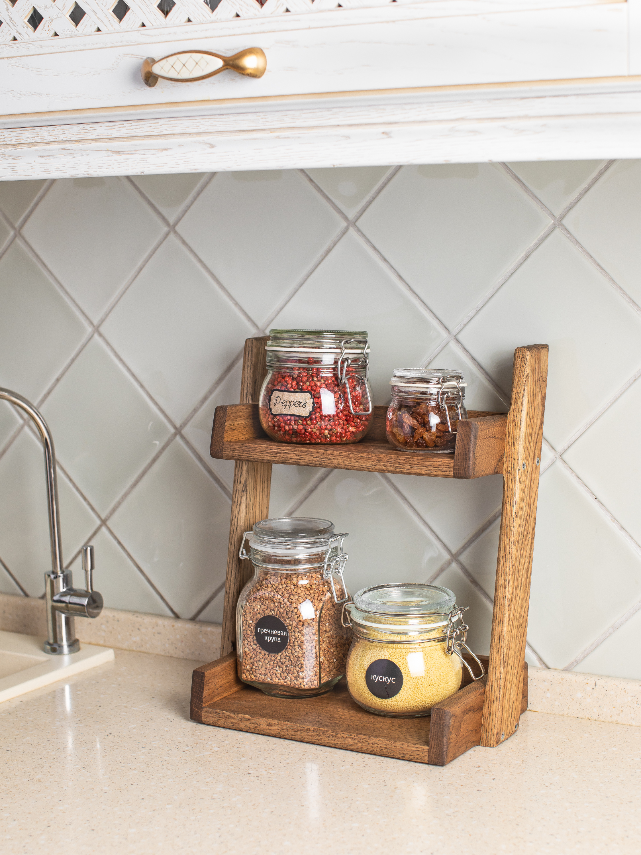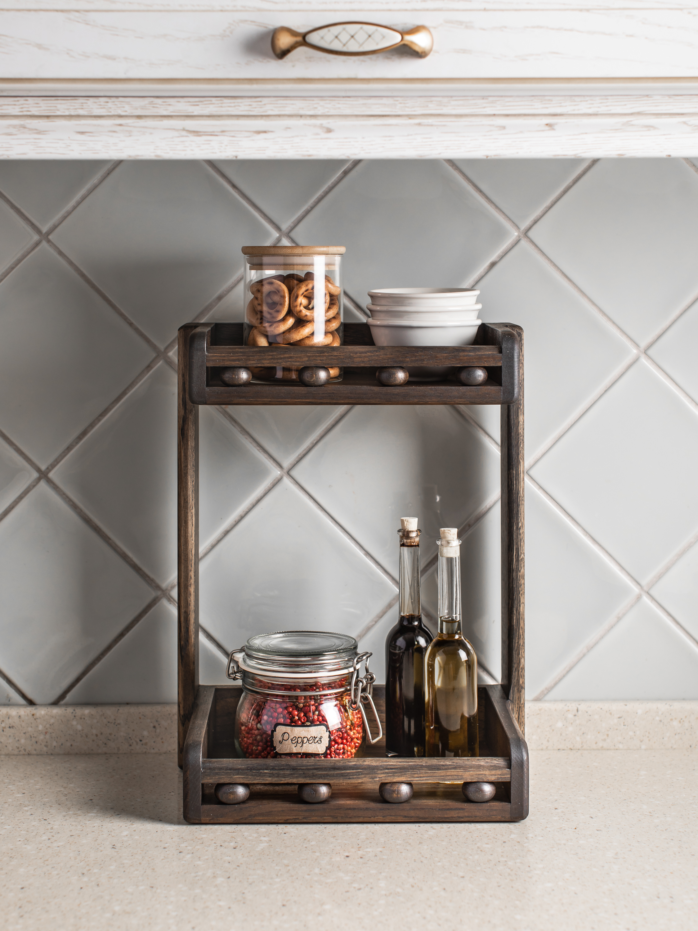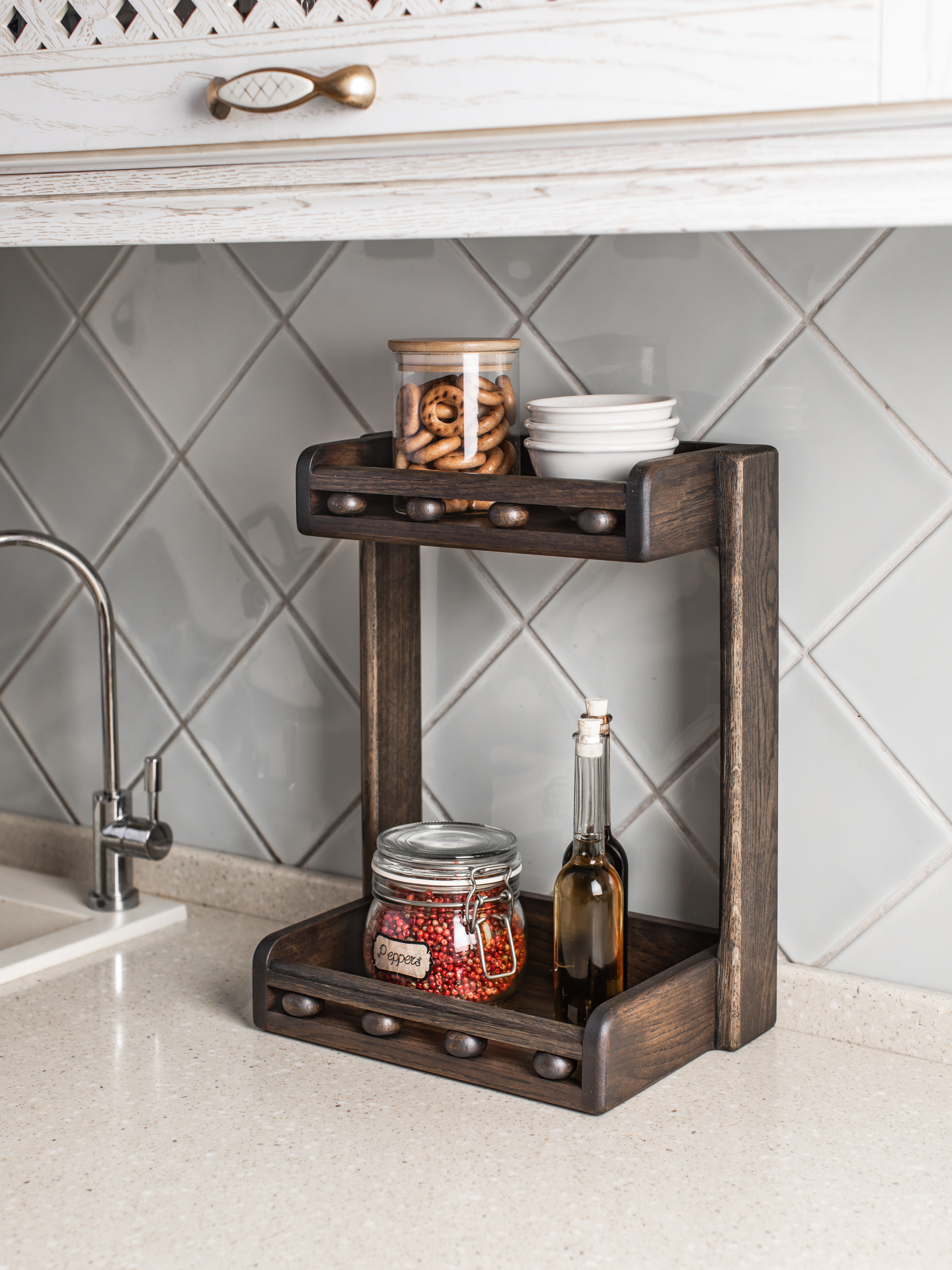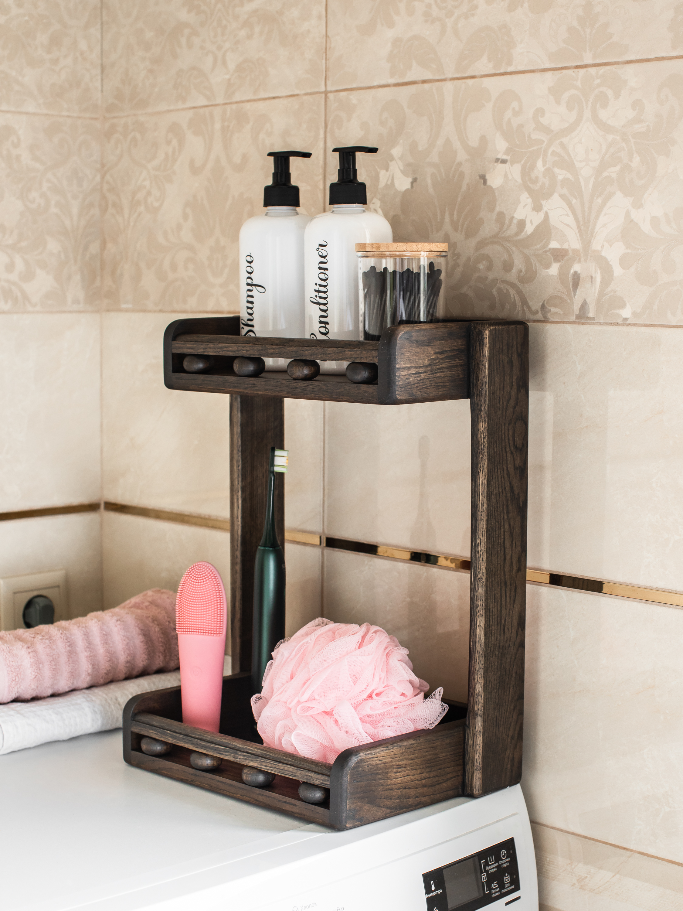 Этажерка с двумя полками из дуба, 2 секц., Дерево, Дуб, 30х18х35 см