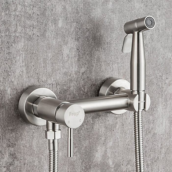 Однорычажный смеситель с гигиеническим душем Frap F7503-5 сатин, латунь