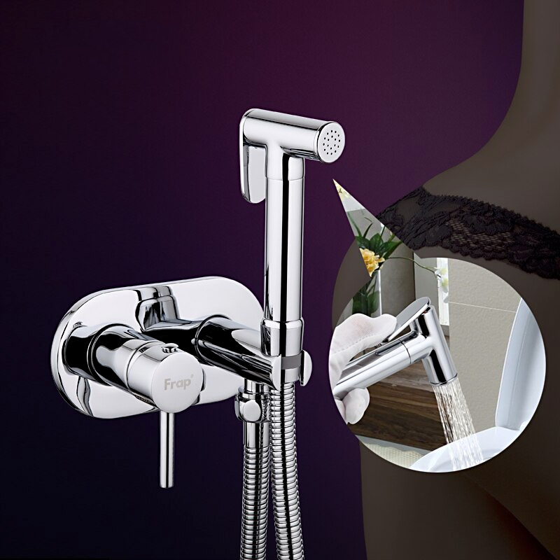 Встраиваемый однорычажный смеситель с гигиеническим душем Frap F7506 хром, латунь