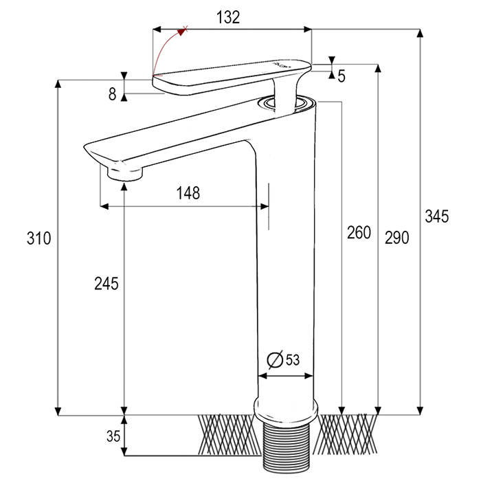 Высокий однорычажный смеситель для накладной чаши-раковины Frap F1052-57 черный, латунь
