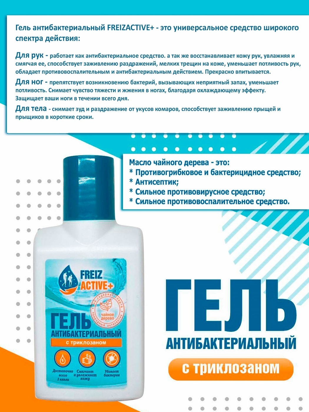 FREIZACTIVE+ Гель для рук антибактериальный с триклозаном (санитейзер, антисептик), 90 мл - 2 шт.