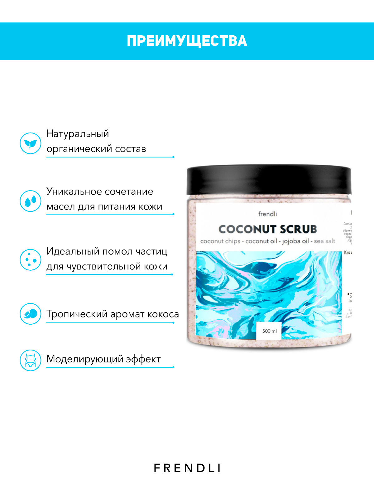 Frendli Подтягивающий Мега Мятный соляной скраб с маслом Жожоба, Макадамии и экстрактом Готу Кола