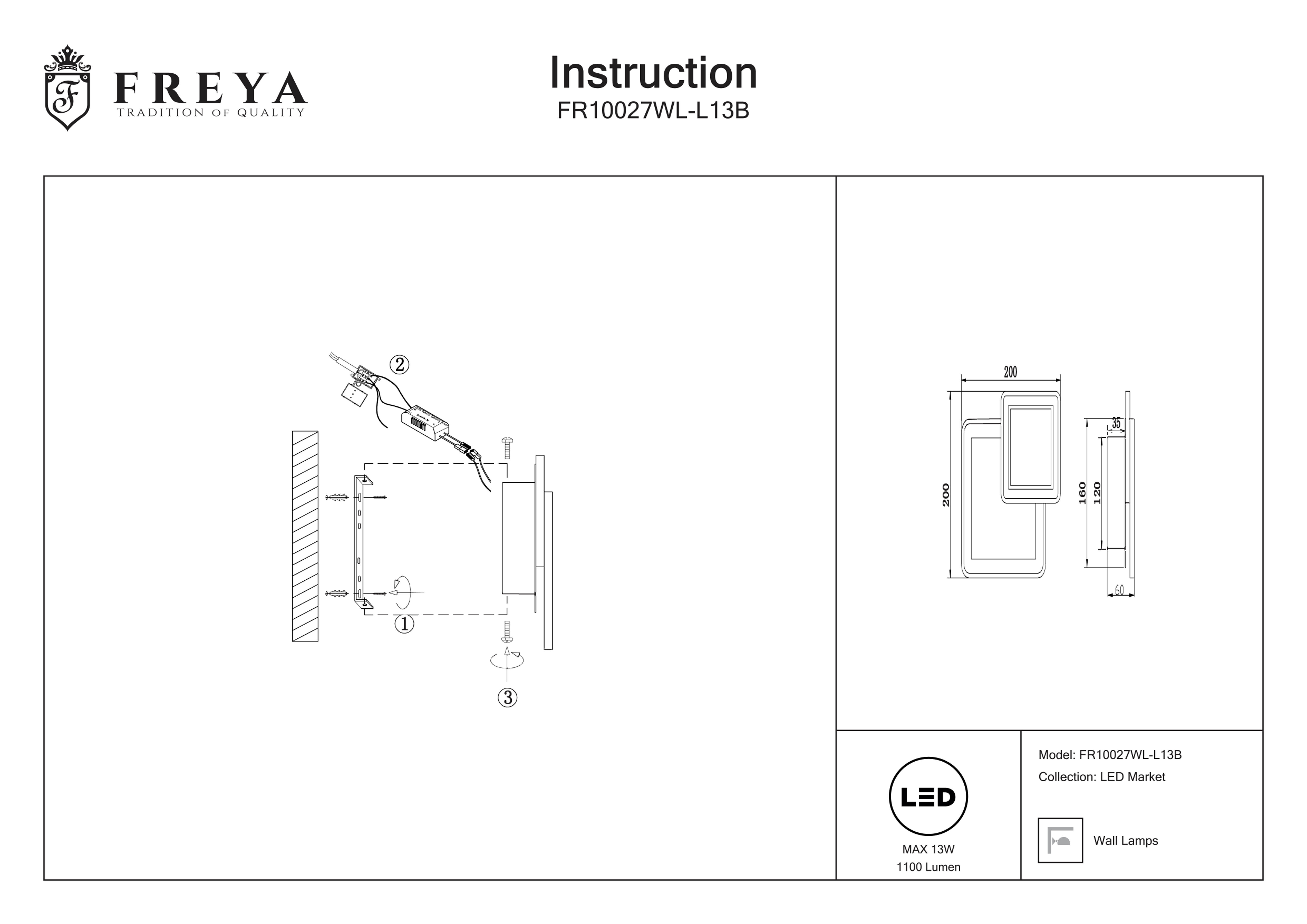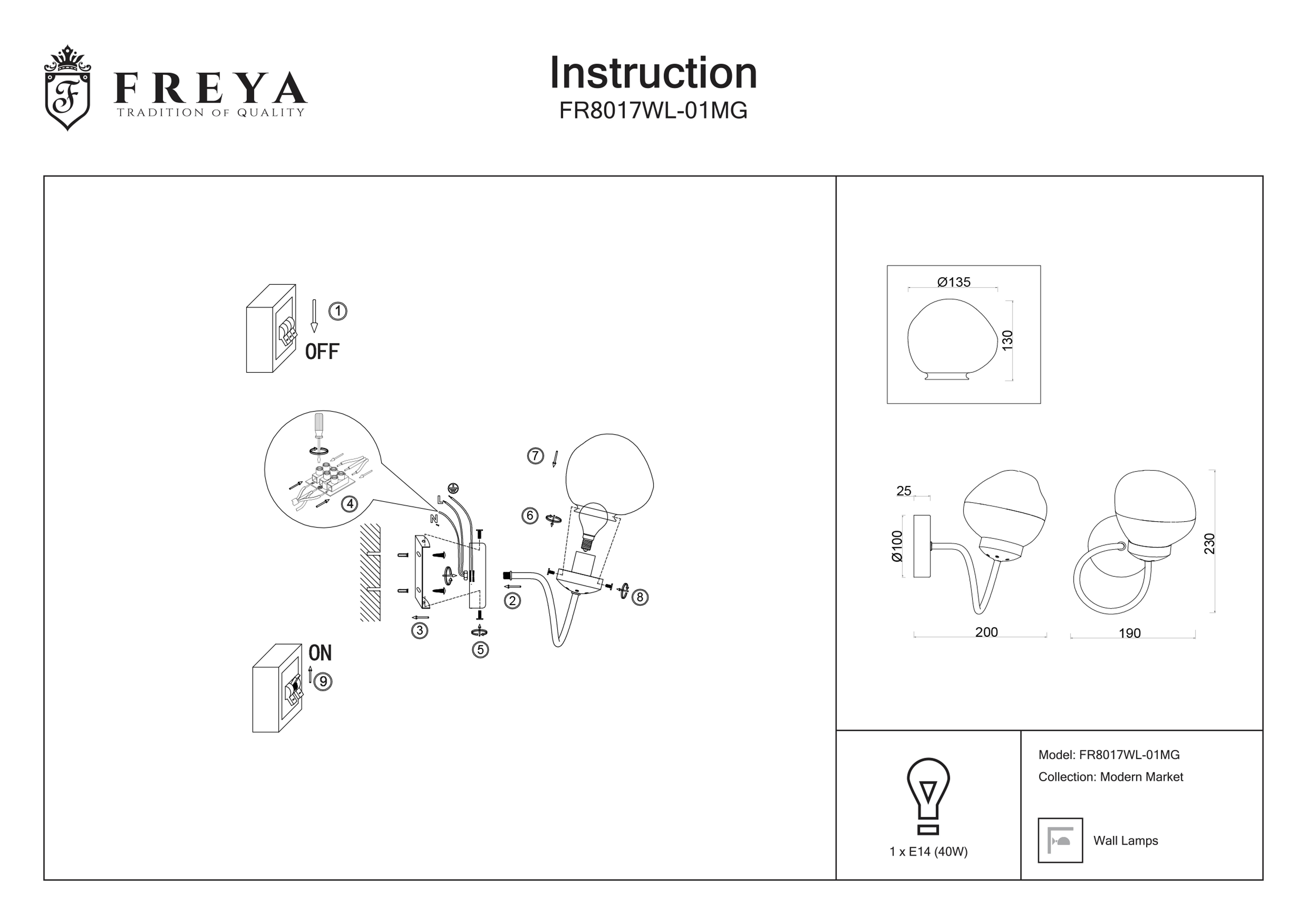 Настенный светильник Freya FR5140WL-01GB, E27, 40 Вт