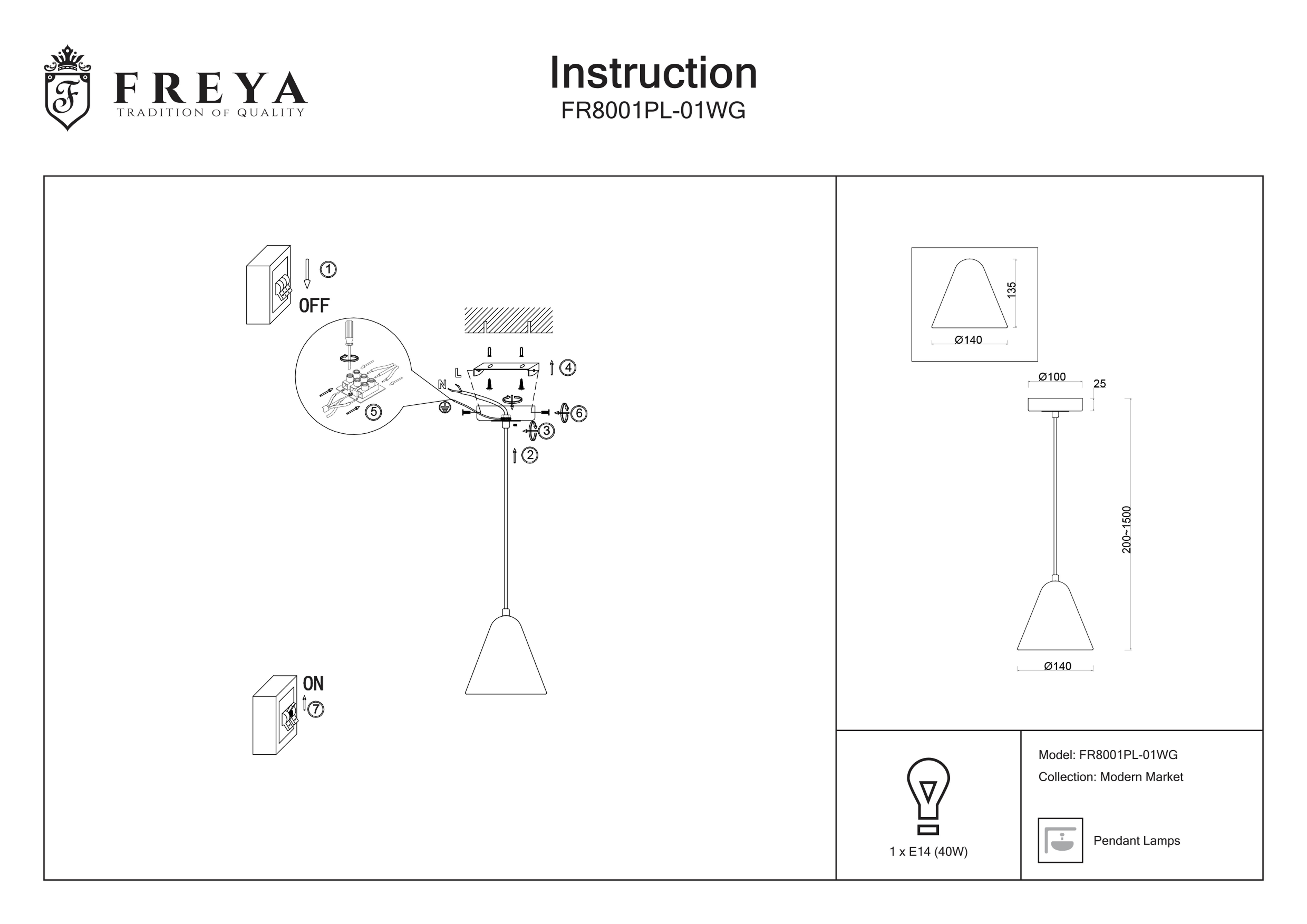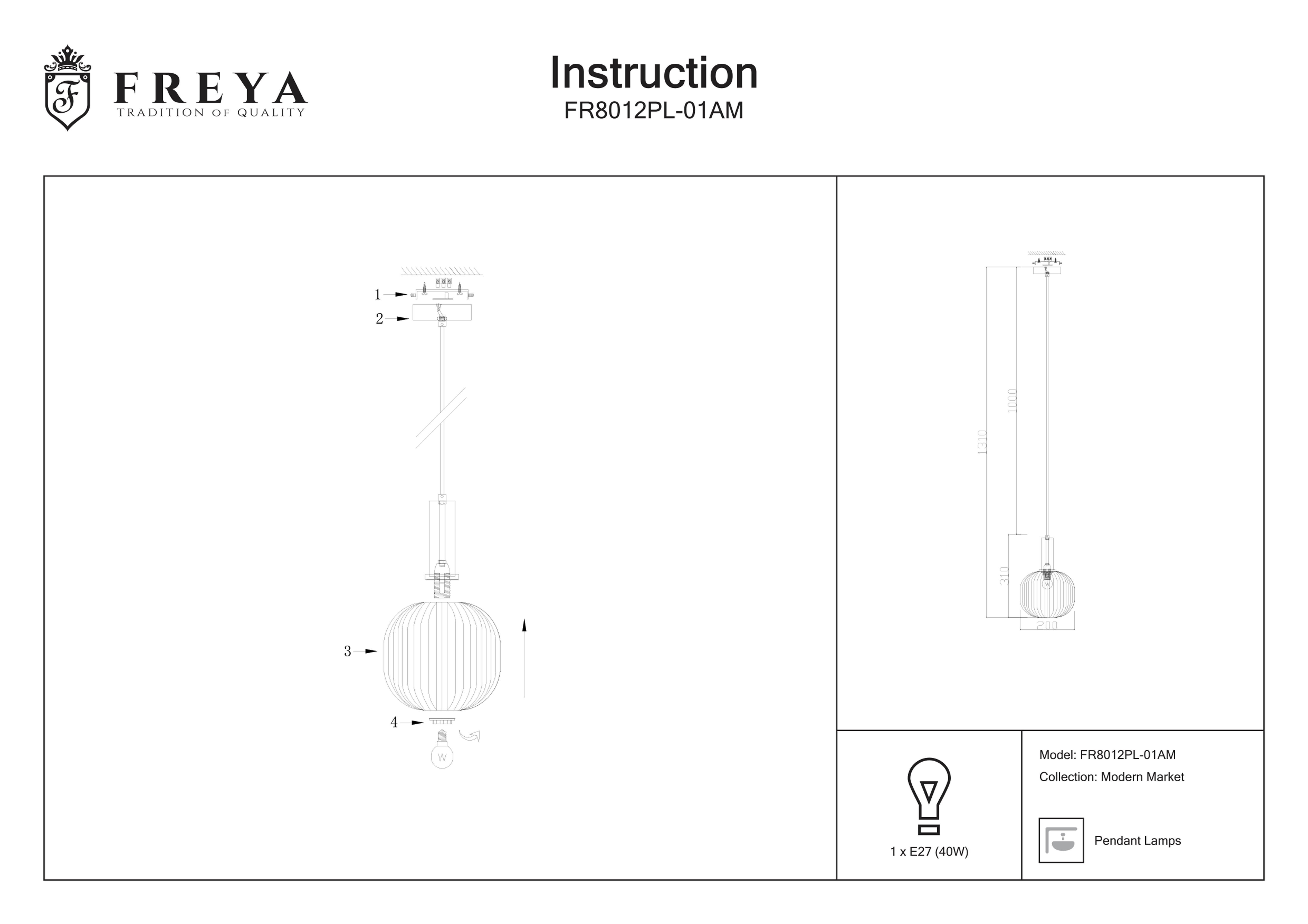 Подвесной светильник Freya Zelma, E27, 40 Вт