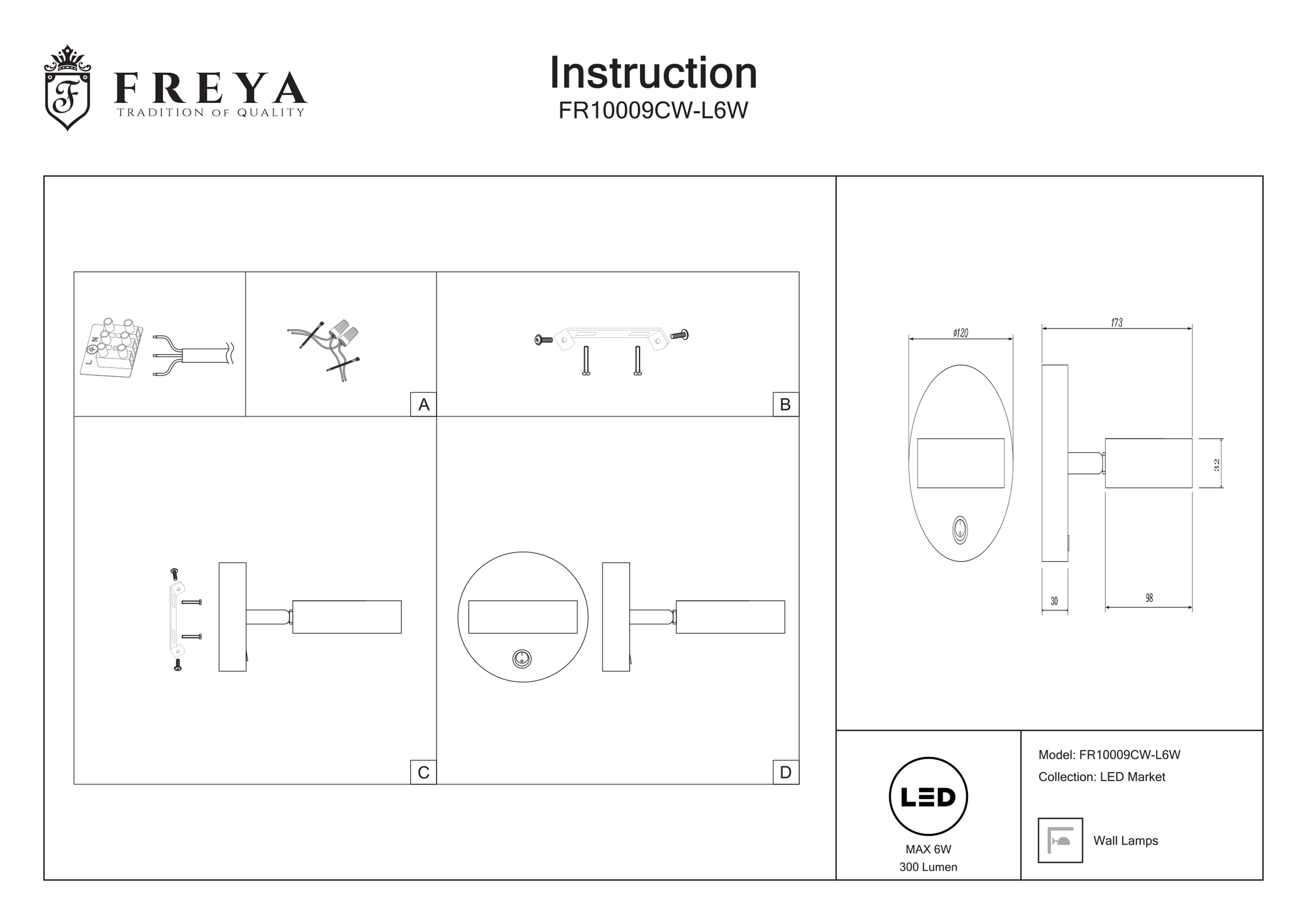Бра Freya PointTwo FR10002WL-L6, LED, 6 Вт