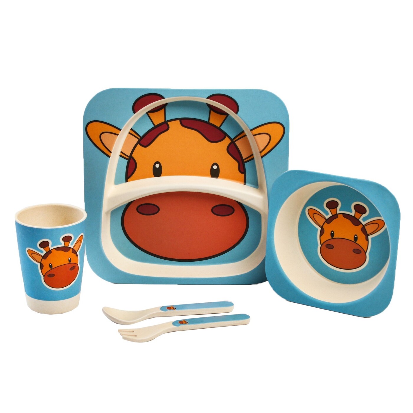 Набор бамбуковой посуды FUD-GOOD "Жирафик", тарелка, миска, стакан, приборы, 5 предметов