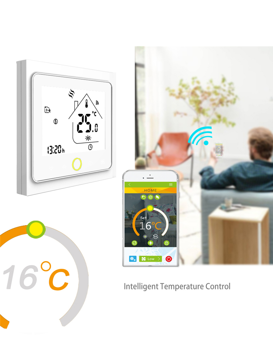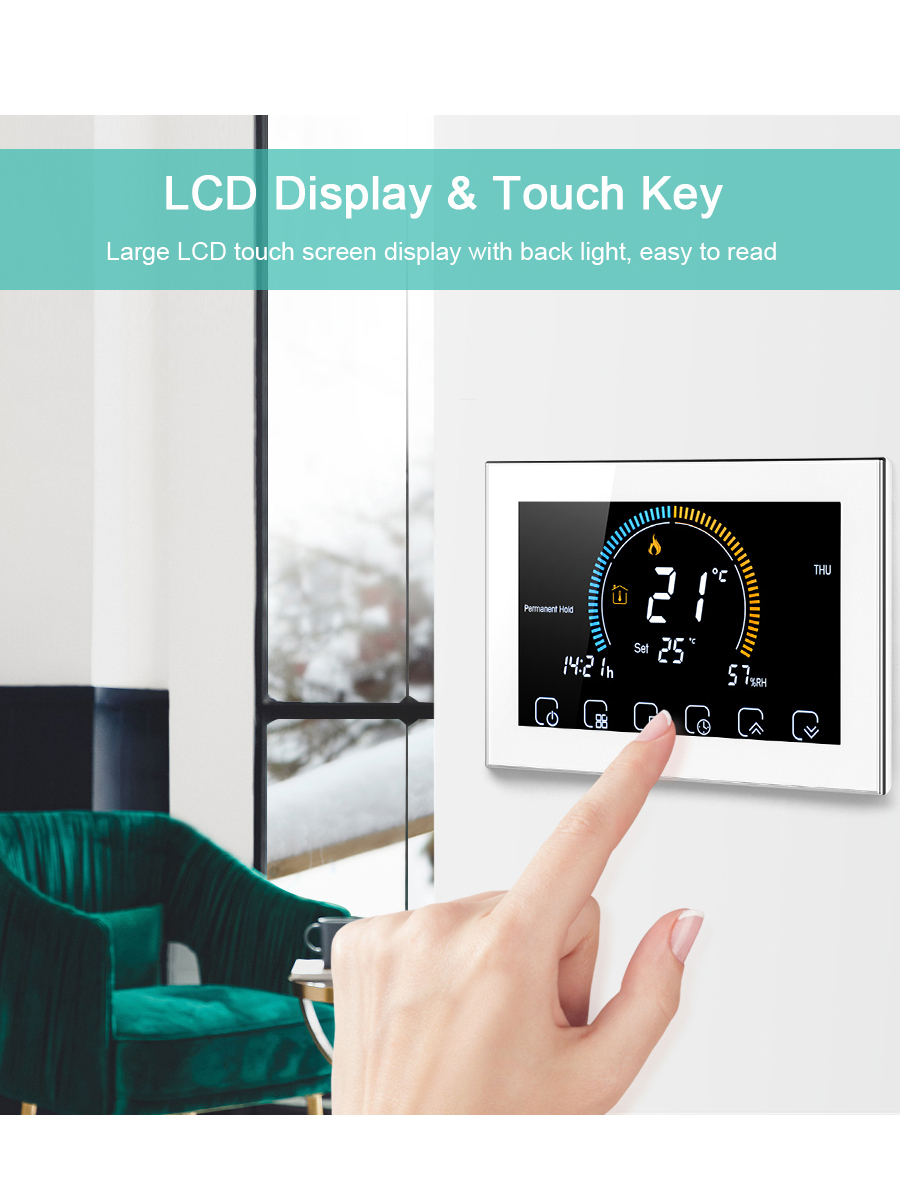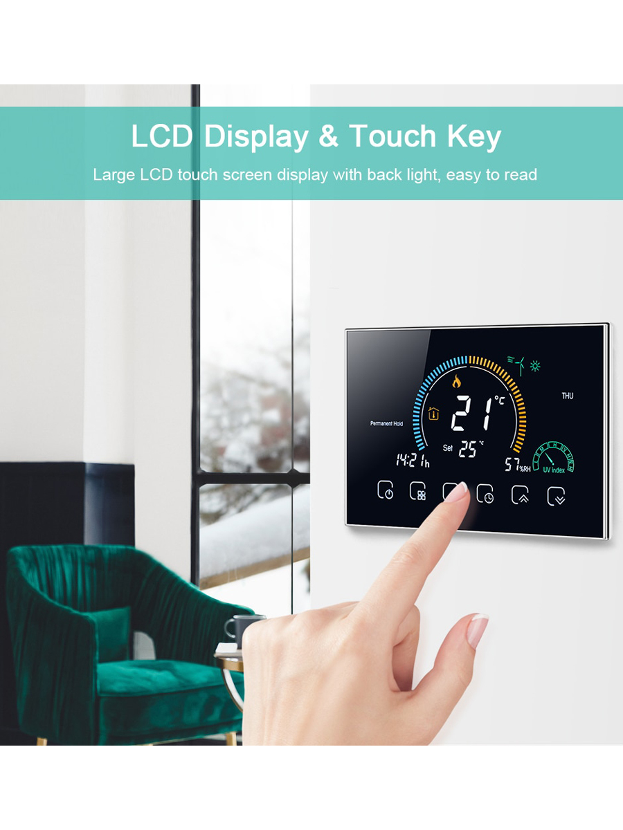 Терморегулятор/термостат FUJIHOME BHT-003GW, для газового котла, с WiFi Для теплого пола