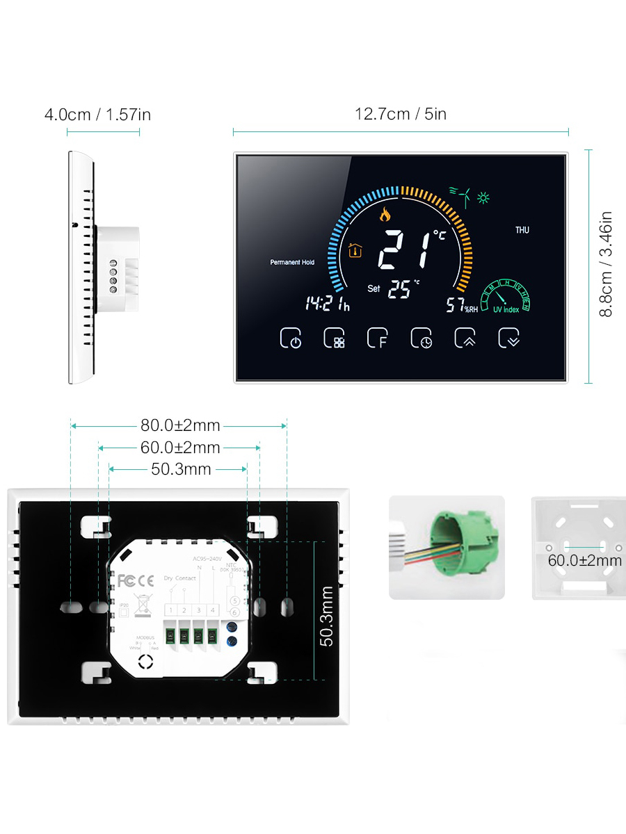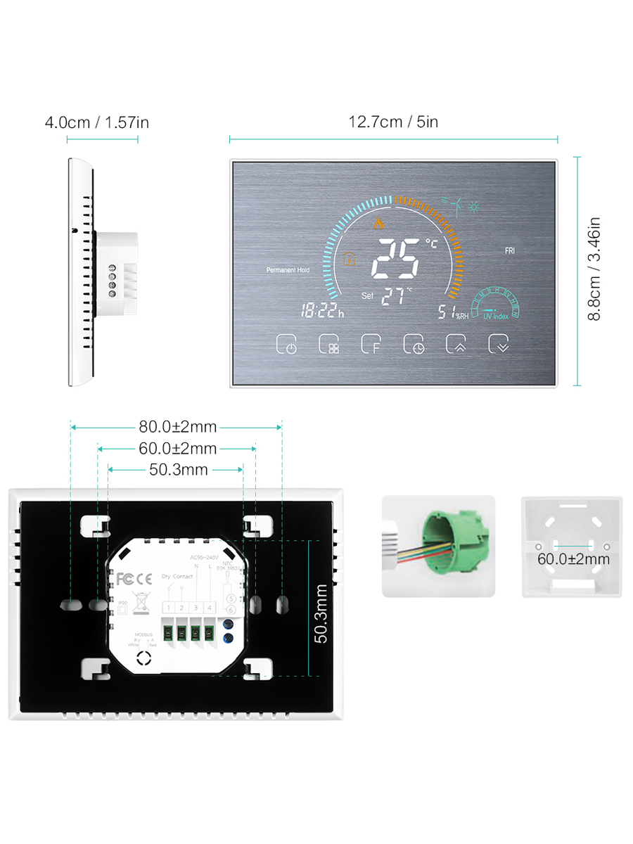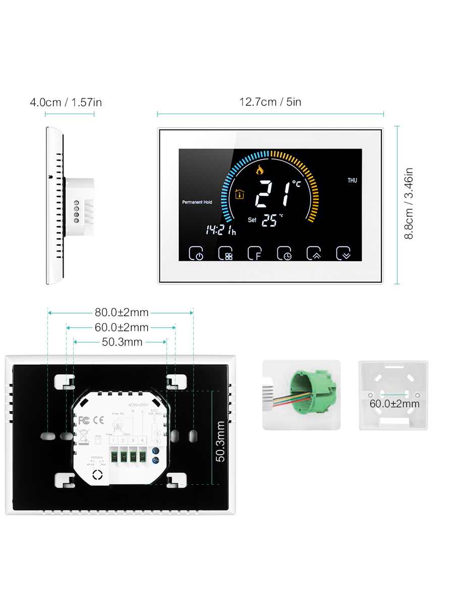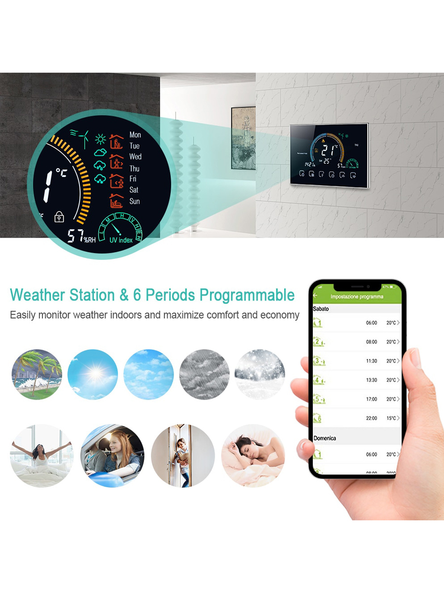 Терморегулятор/термостат FUJIHOME BHT-003GW, для газового котла, с WiFi Для теплого пола