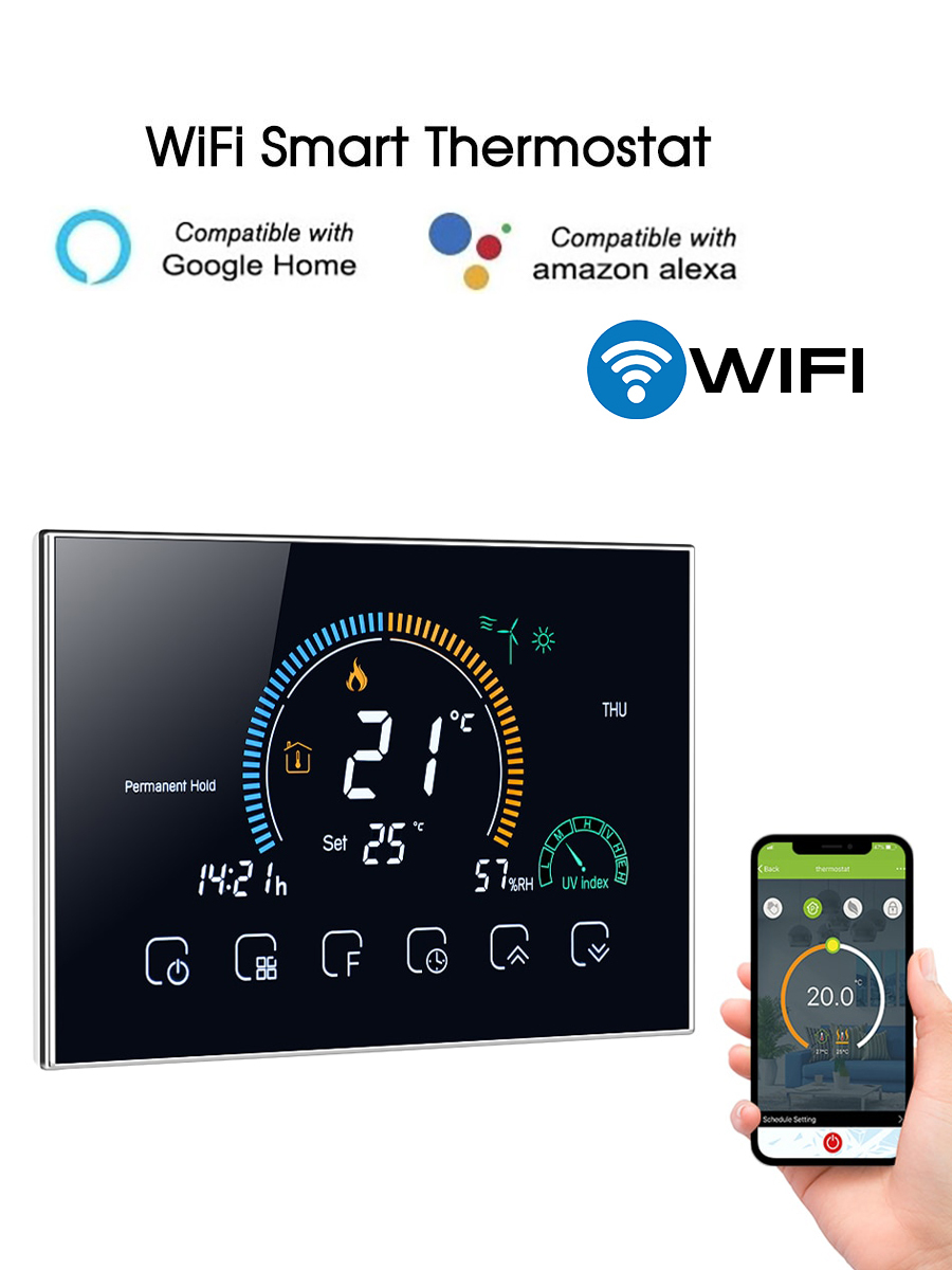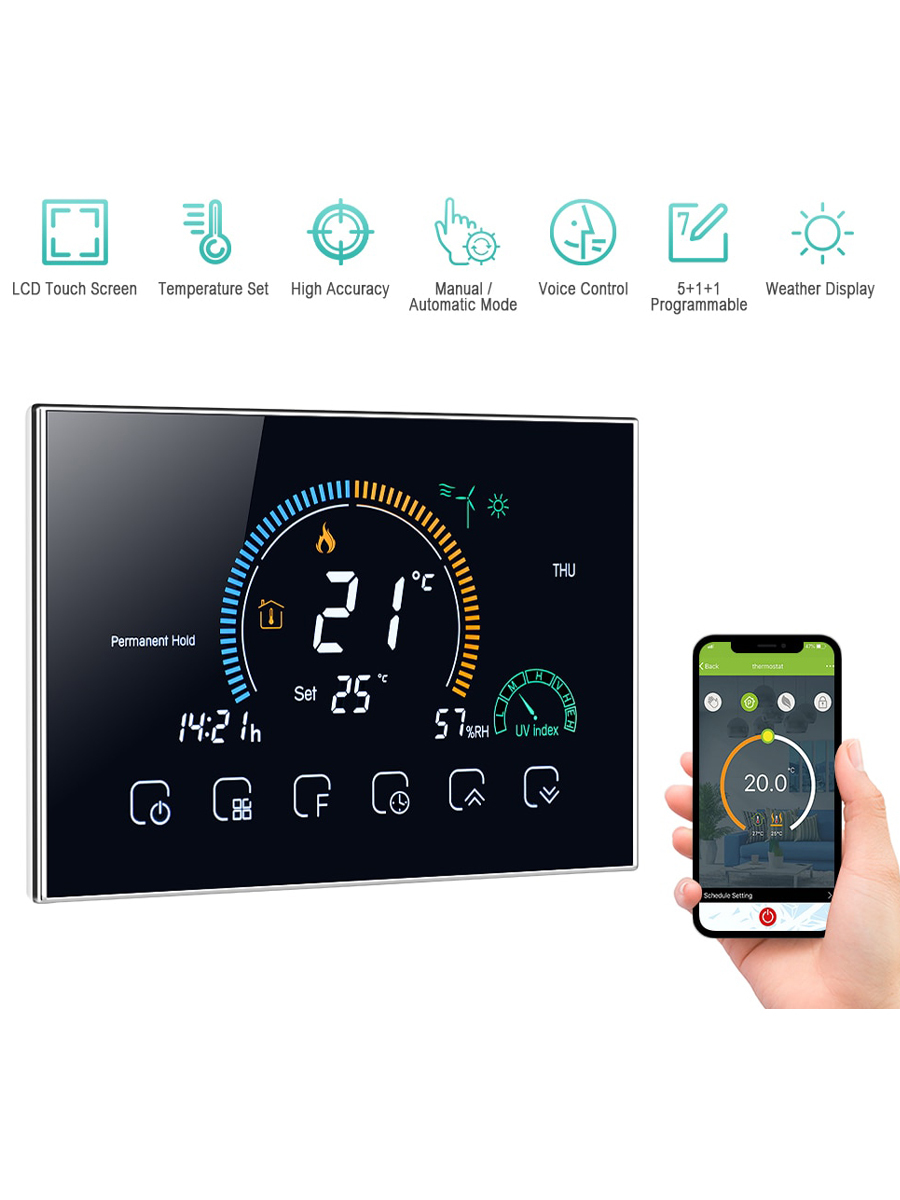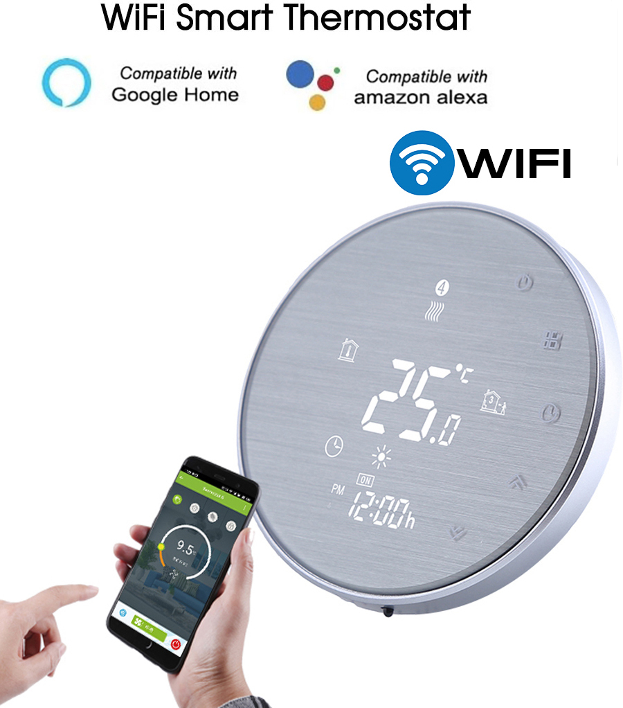 Терморегулятор/термостат FUJIHOME BHT-003G, программируемый с WiFi до 3500Вт для теплого пола, серый