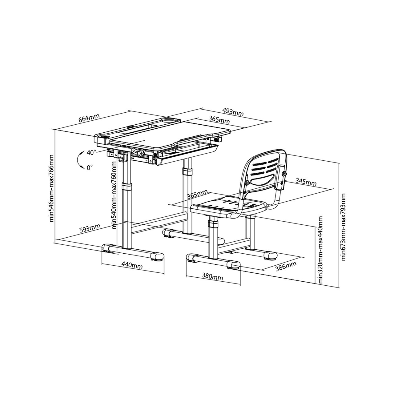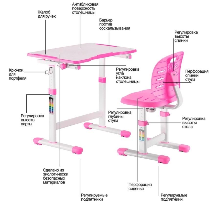 Комплект парта + стул FunDesk Vanda, 70х55х76 см