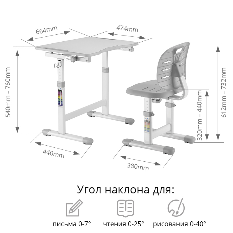 Комплект парта + стул, Парта Трансформер FunDesk OMINO, 66х47х76 см
