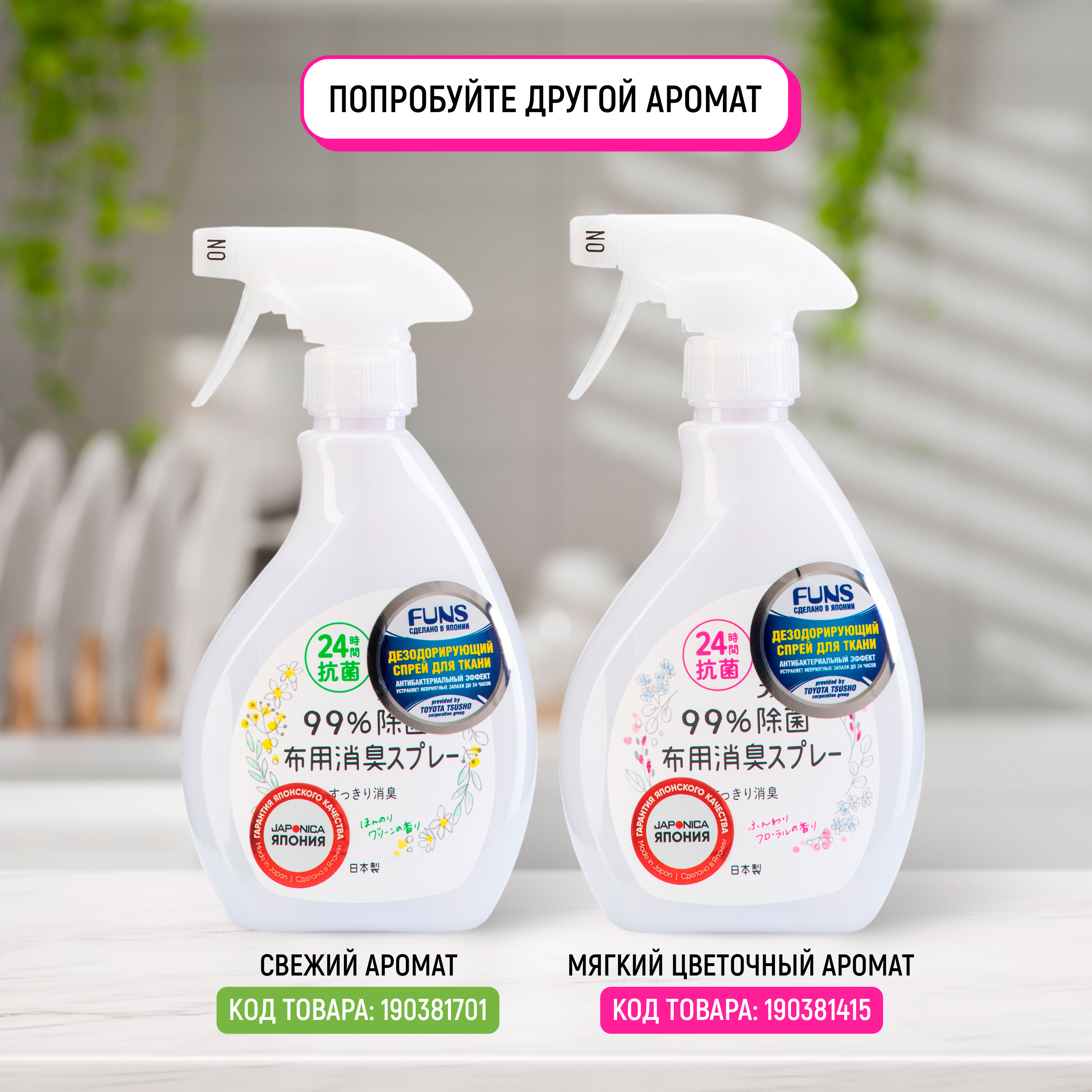 Cпрей для ткани FUNS дезодорирующий с антибактериальным эффектом Зеленый аромат 380 мл