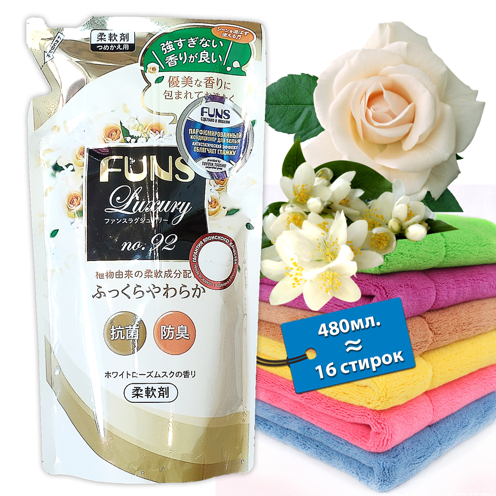 Funs кондиционер для белья парфюмированный, аромат белой розы и жасмина, запасной блок 480мл.