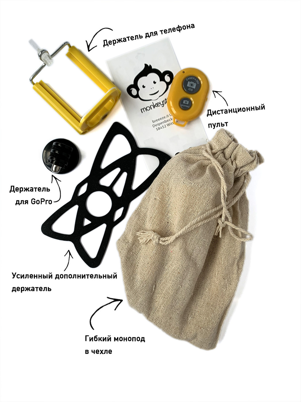 Гибкий штатив для телефона с пультом и блютуз управлением, желтый монопод для селфи bluetooth