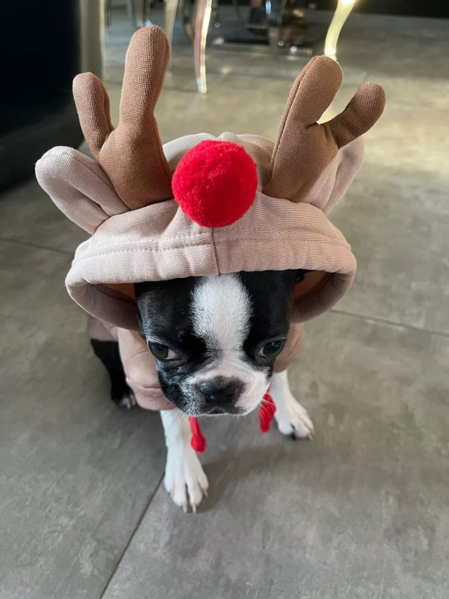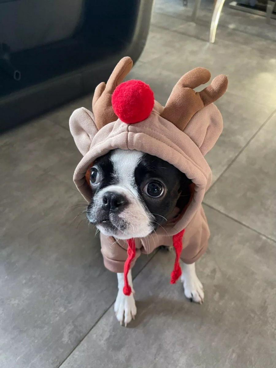 Кофта-толстовка для кошек и собак GABYDOG Новогодняя с рогами оленя, размер M (5-7 кг)