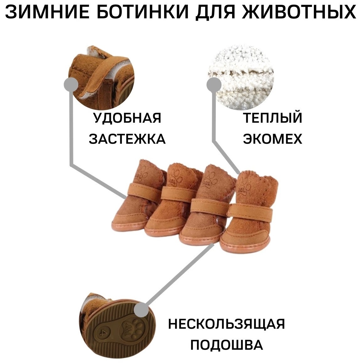 Ботинки для собак GABYDOG коричневые, размер XS, 4 шт.