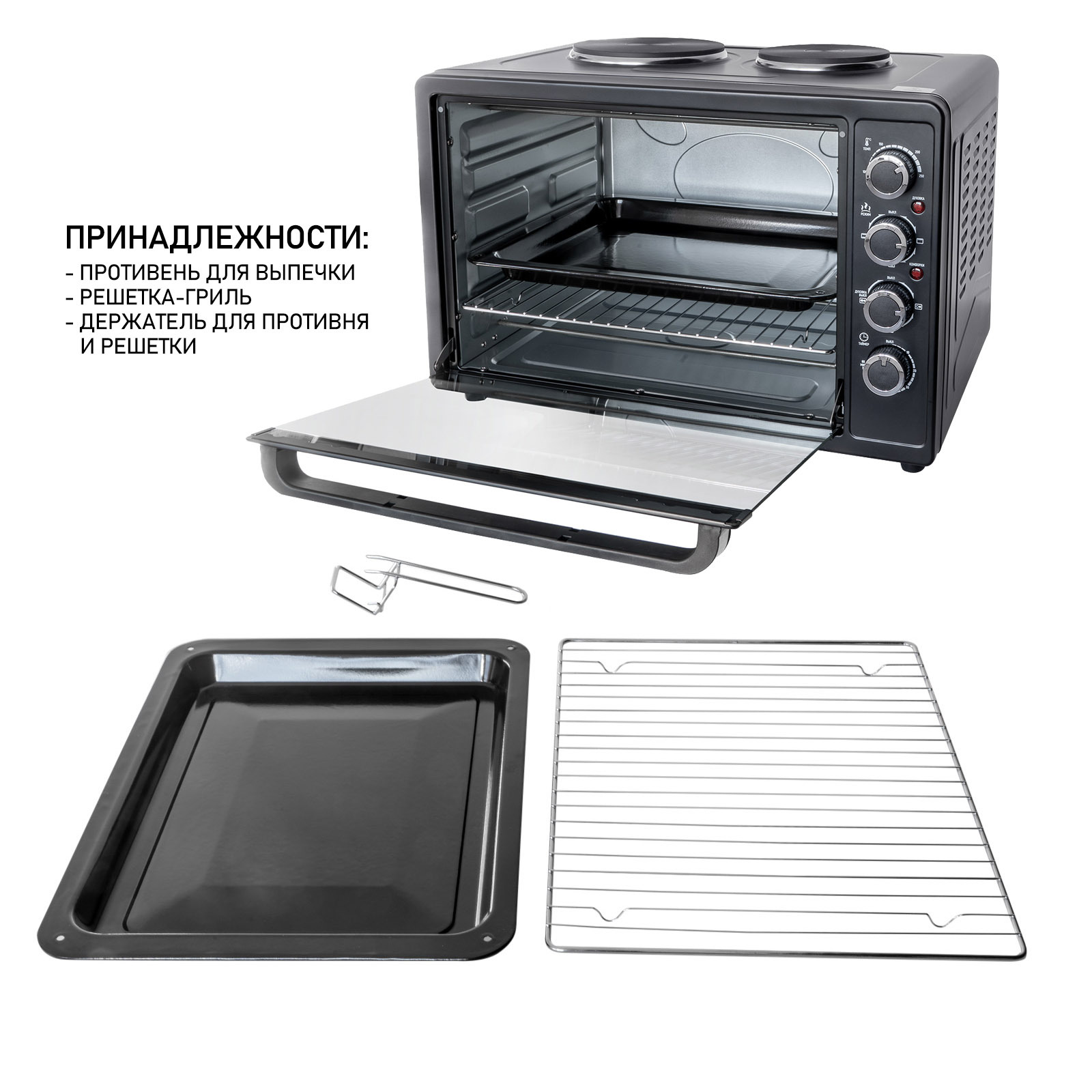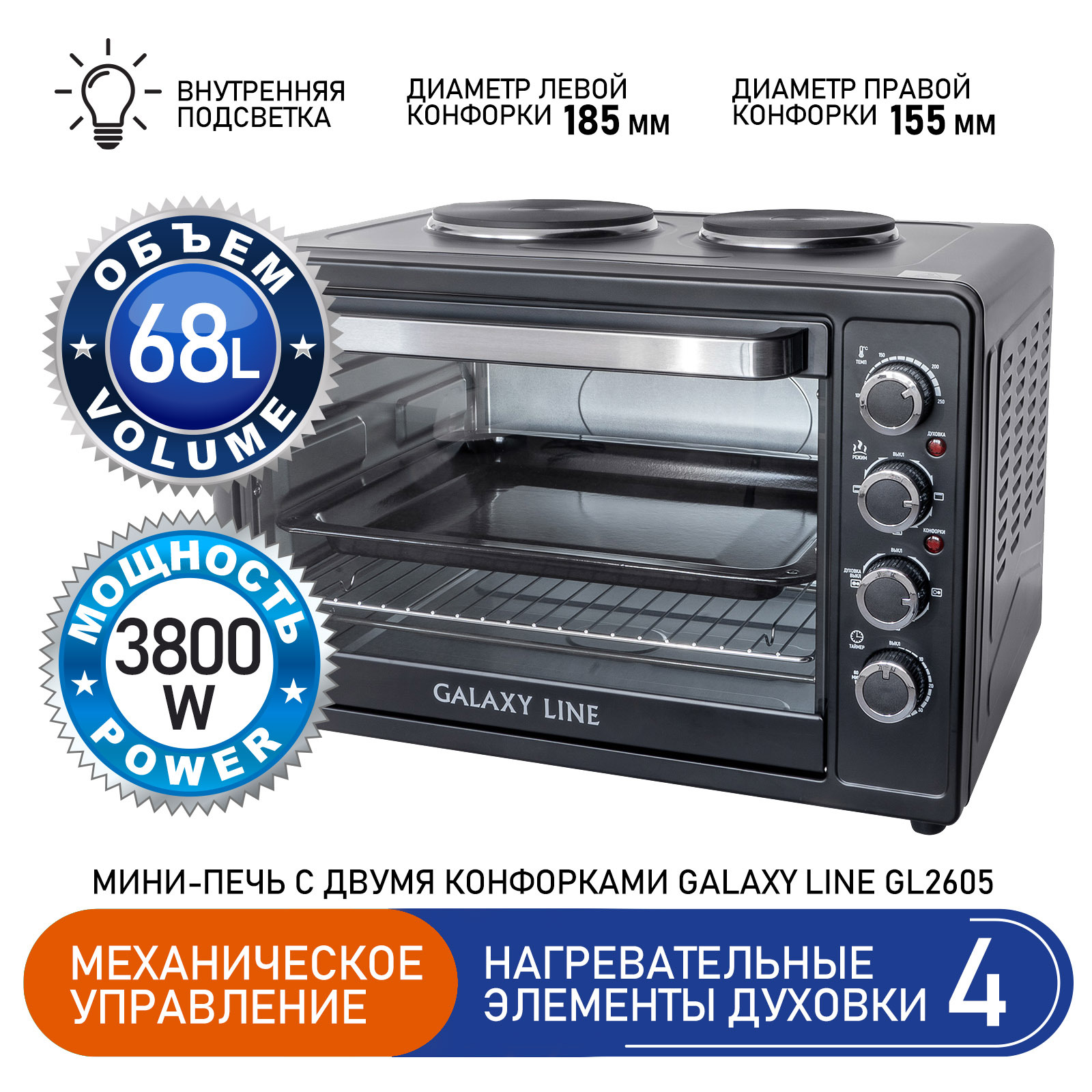 Мини печь электрическая с конфорками GALAXY LINE GL2605 плитка электрическая настольная электродуховка с грилем на 68 литров мощность 3800 Вт