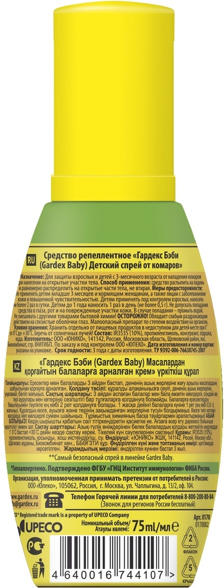 Средство от насекомых Gardex Baby Спрей от комаров, детский, 75 мл