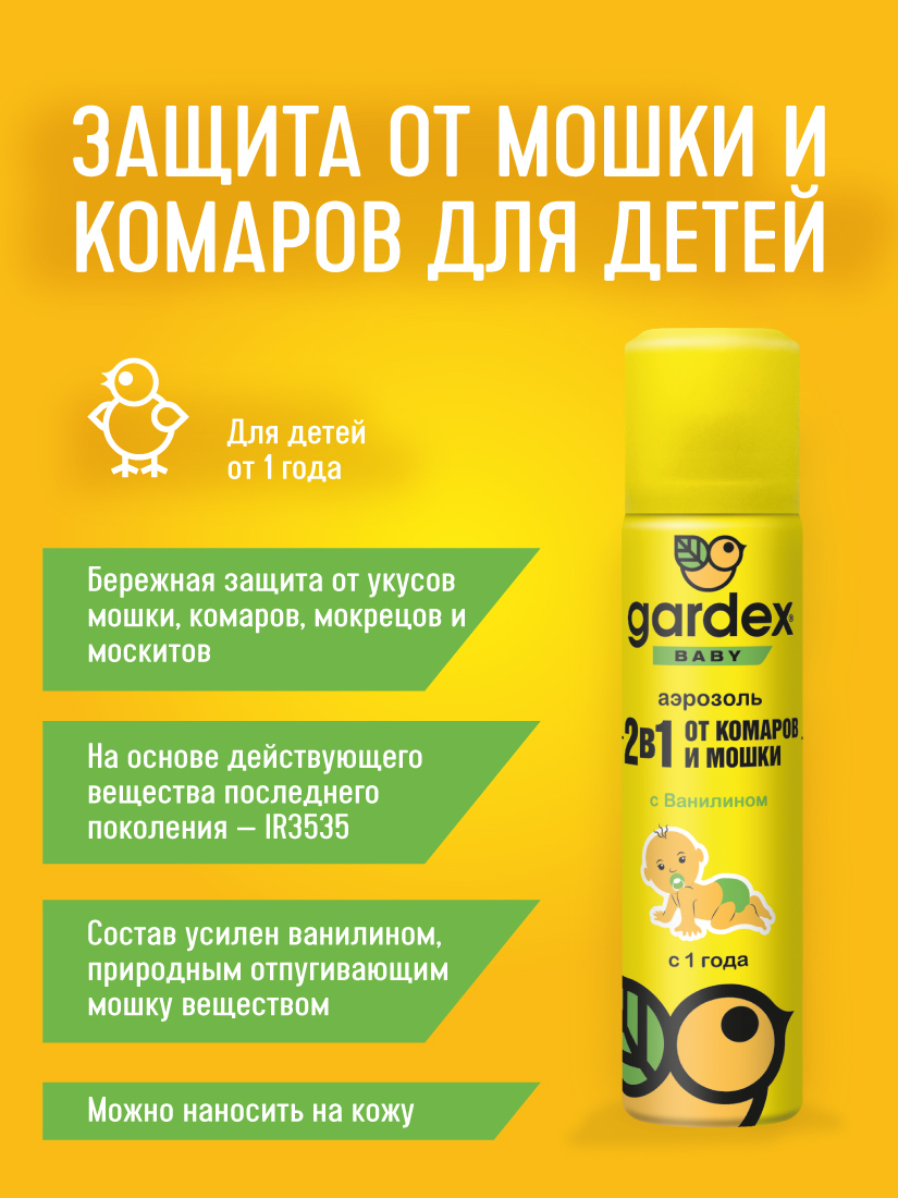 Ср-во от клещей Gardex Baby 80мл Аэрозоль от комаров и мошки для детей с 1 год