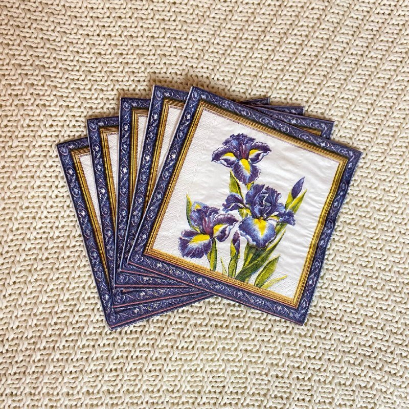 Салфетки бумажные New Line FRESCO Ирисы, 3 слоя 20 листов 33*33