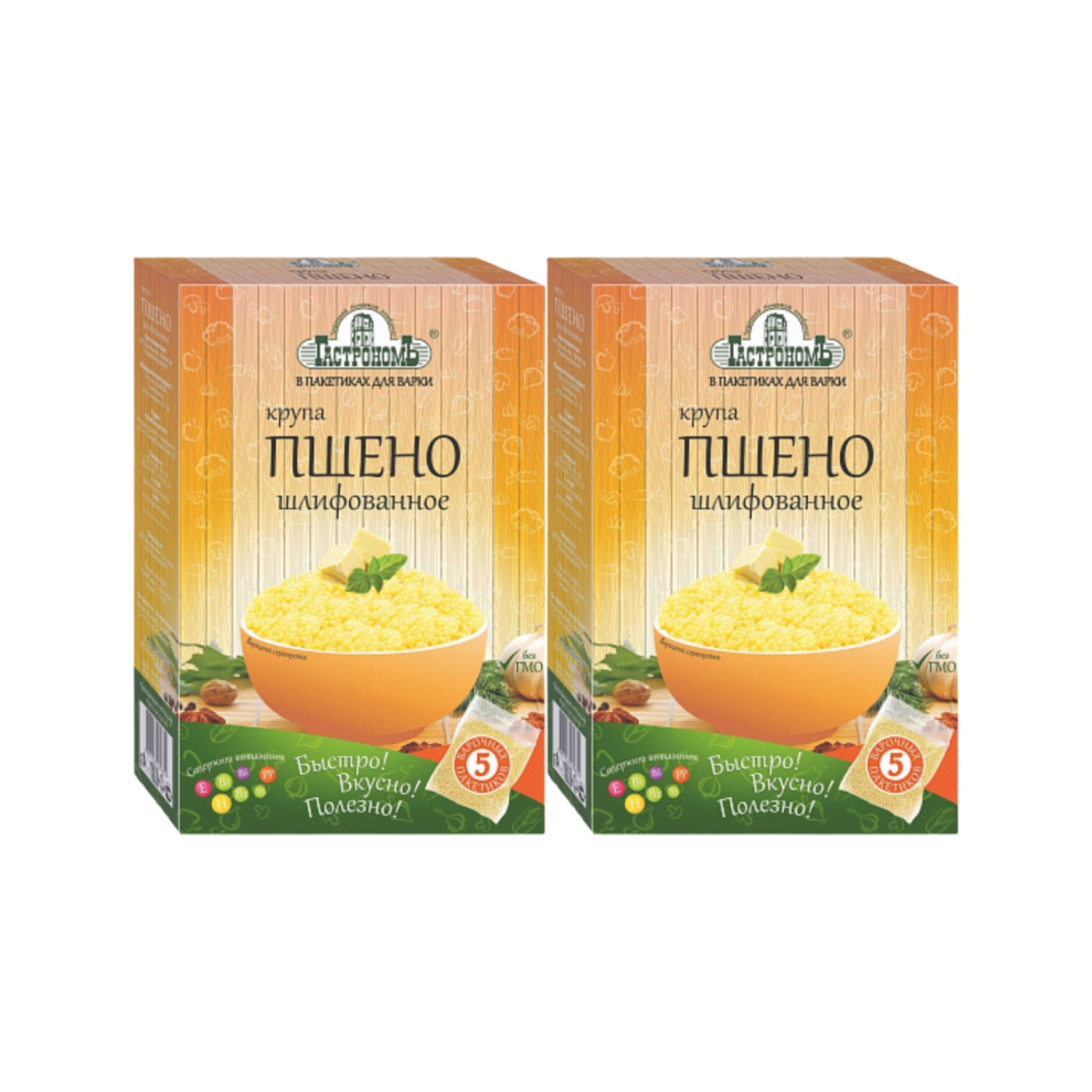 Крупа пшено шлифованное Гастрономъ в варочных пакетиках, 5 пакетов, 2 упаковки по 400 г