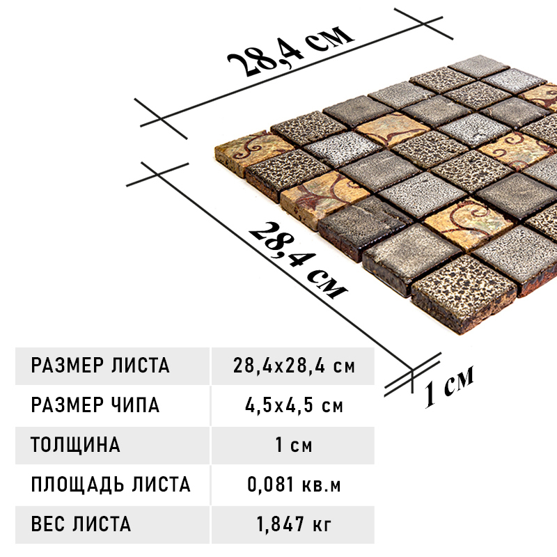 Плитка мозаика GAUDI Rustico 32.7 см x 32.7 см, размер чипа: 20x20 мм