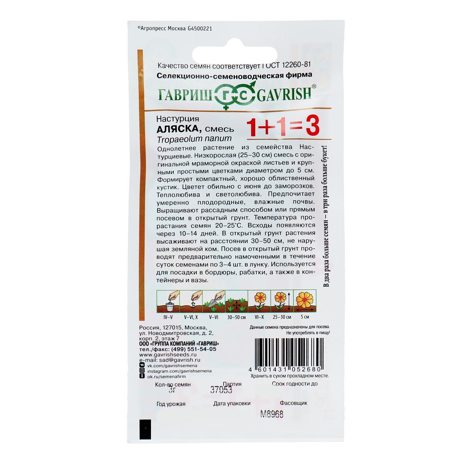 Семена цветов Настурция 1+1 "Аляска", смесь 3,0 г