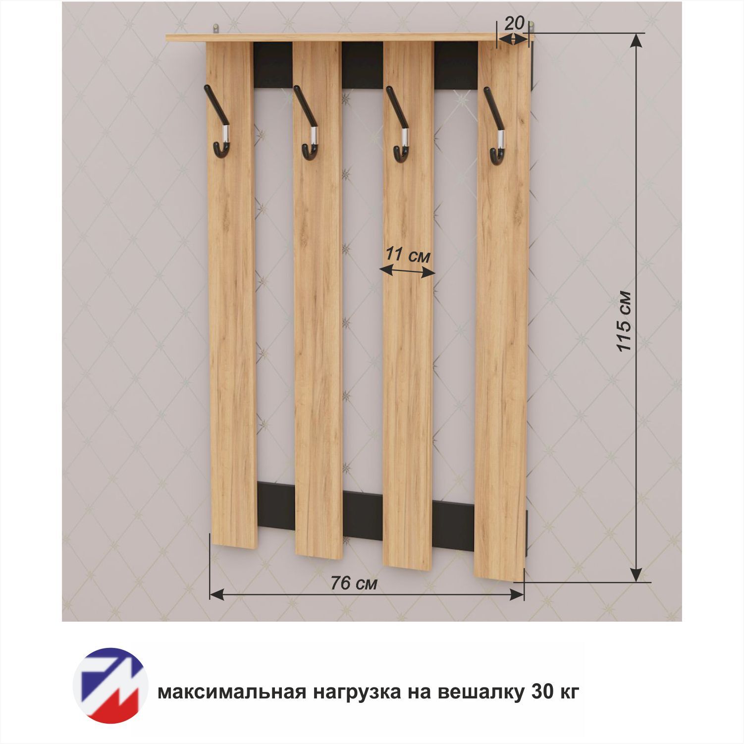 Вешалка в прихожую, Вешалка настенная В-8, 93х20х115 см