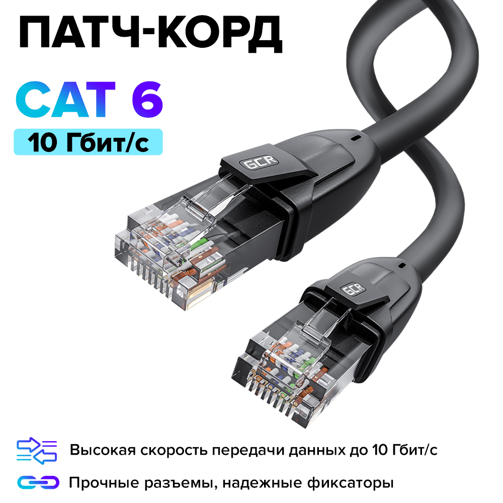 Профессиональный патч корд KAT.6 LAN кабель для подключения интернета 7.5м GCR UTP черный 10 Гбит/с
