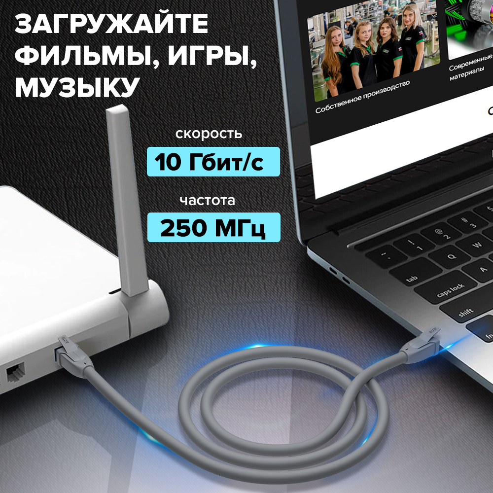 Патч-корд LAN кабель GCR для подключения интернета cat5e RJ45 1Гбит/c 25 метров патч корд серый