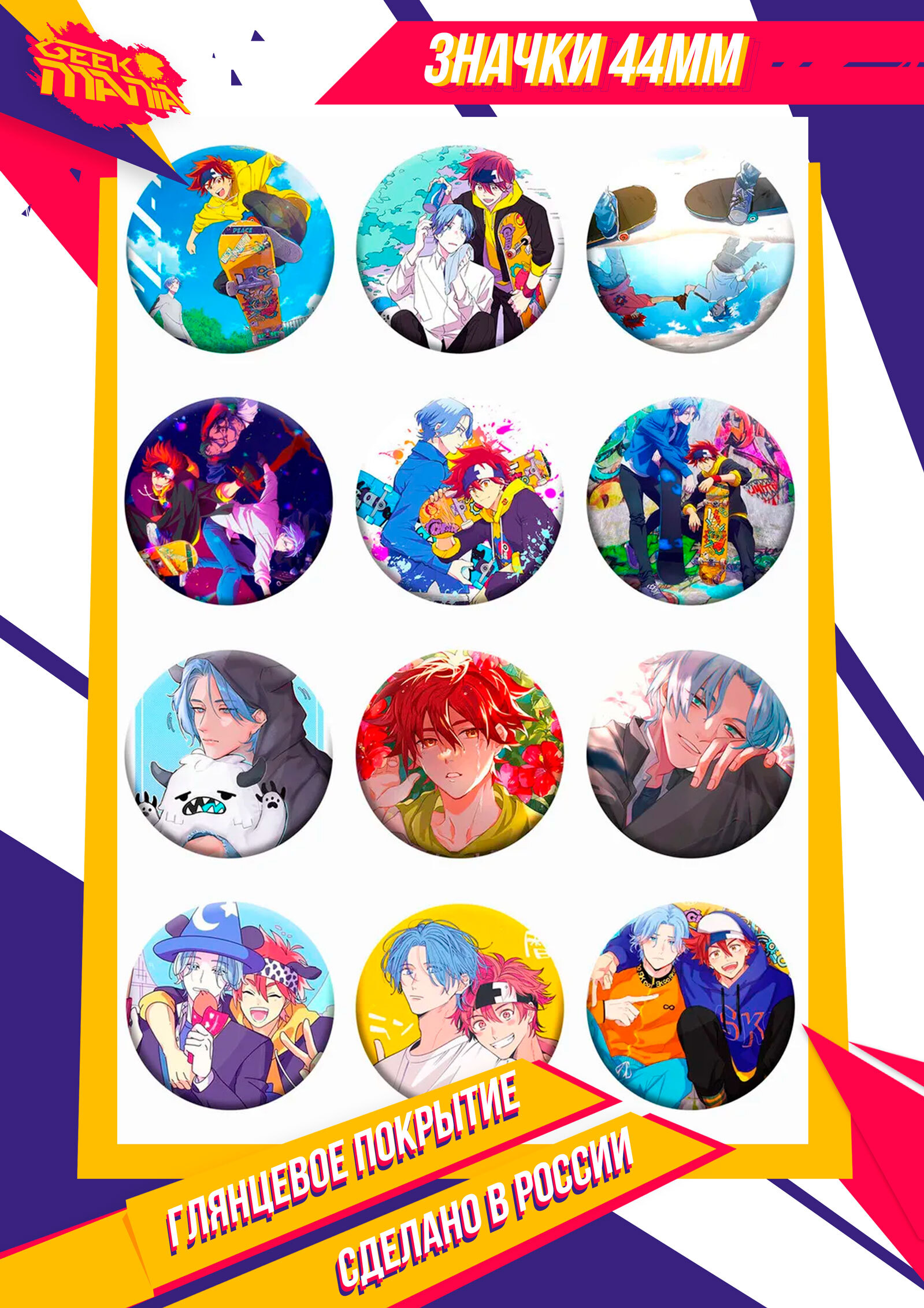 Значки На Скейте в бесконечность SK8 Набор 12 шт Диаметр 44 мм Аниме