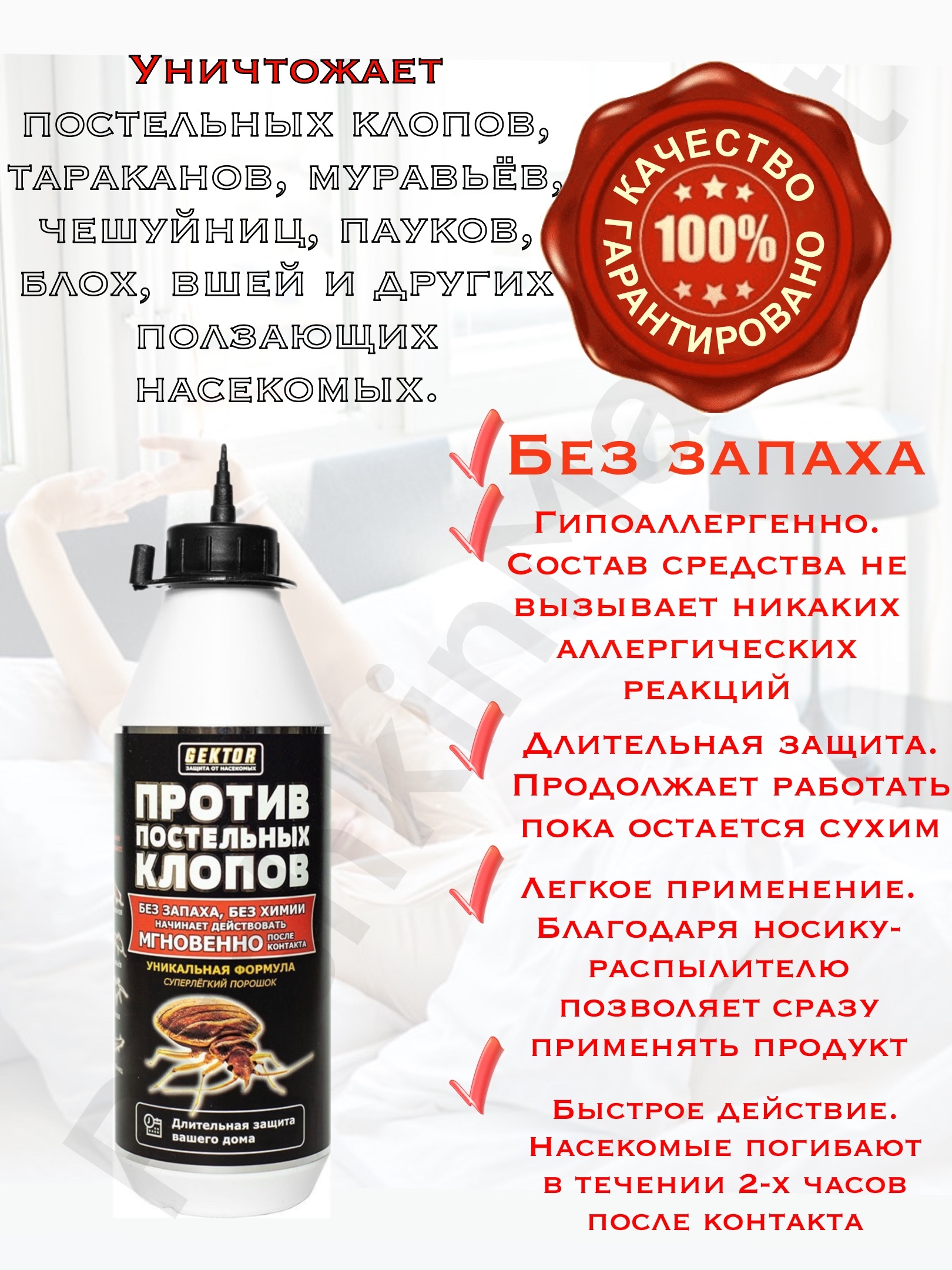 Гектор (Gektor) порошок от постельных клопов 100 г