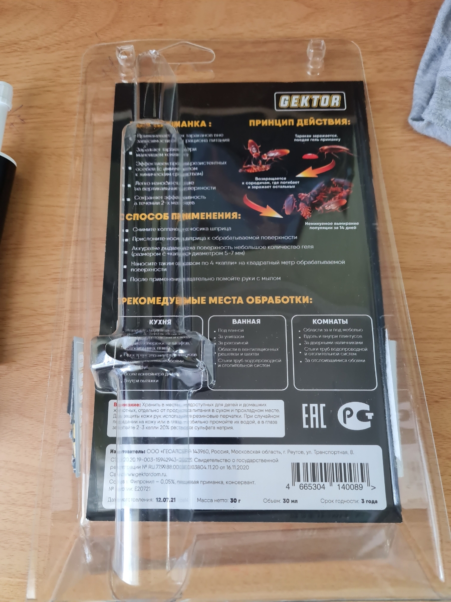 Gektor (Гектор) Гель - Приманка, от тараканов, 30 мл