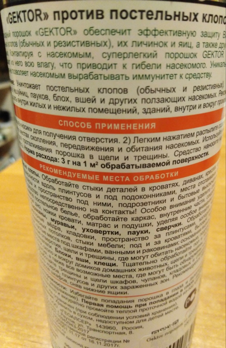 Gektor (Гектор) порошок от постельных клопов и других насекомых, 500 мл.