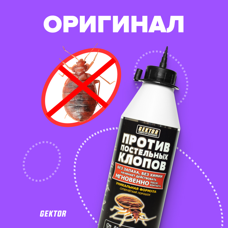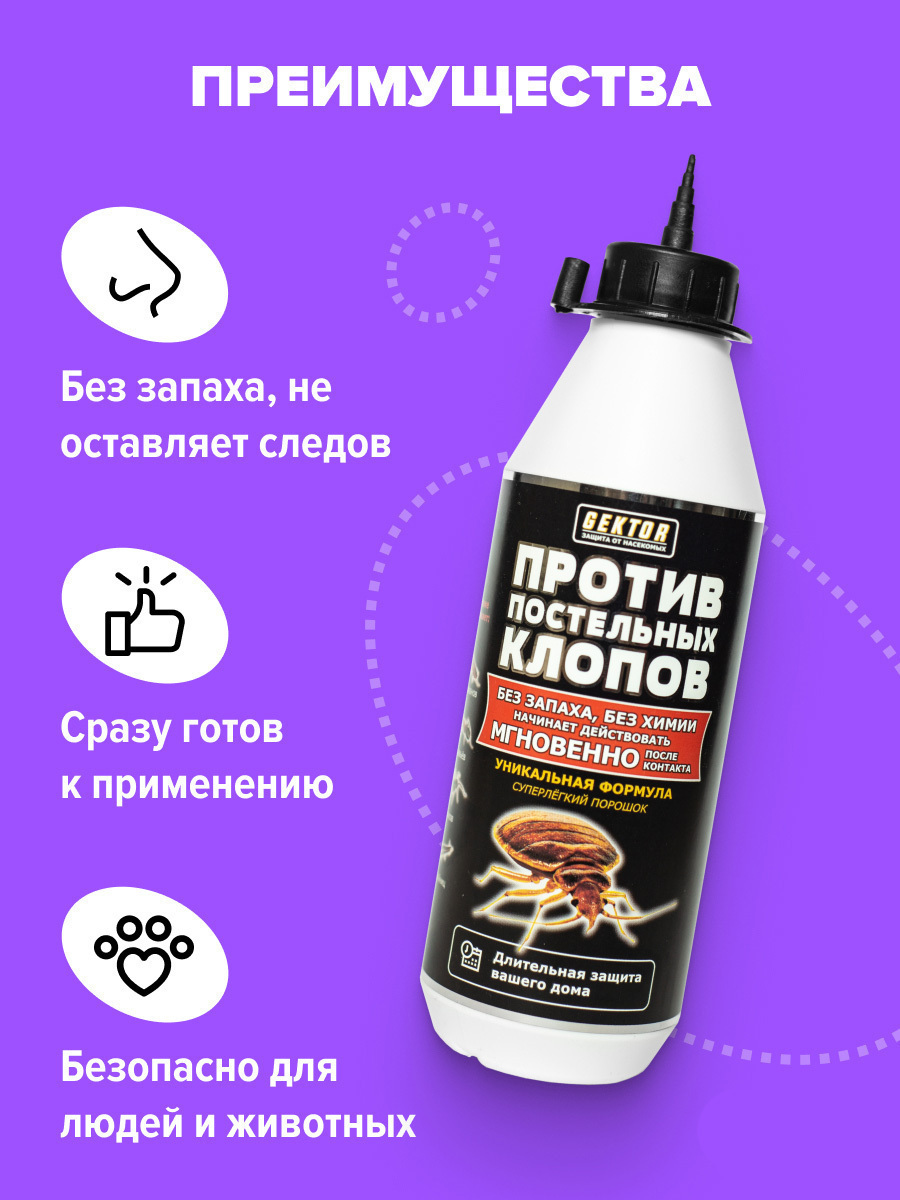 Средство от клопов ГЕКТОР порошок против постельных домашних клопов без запаха, 100 гр