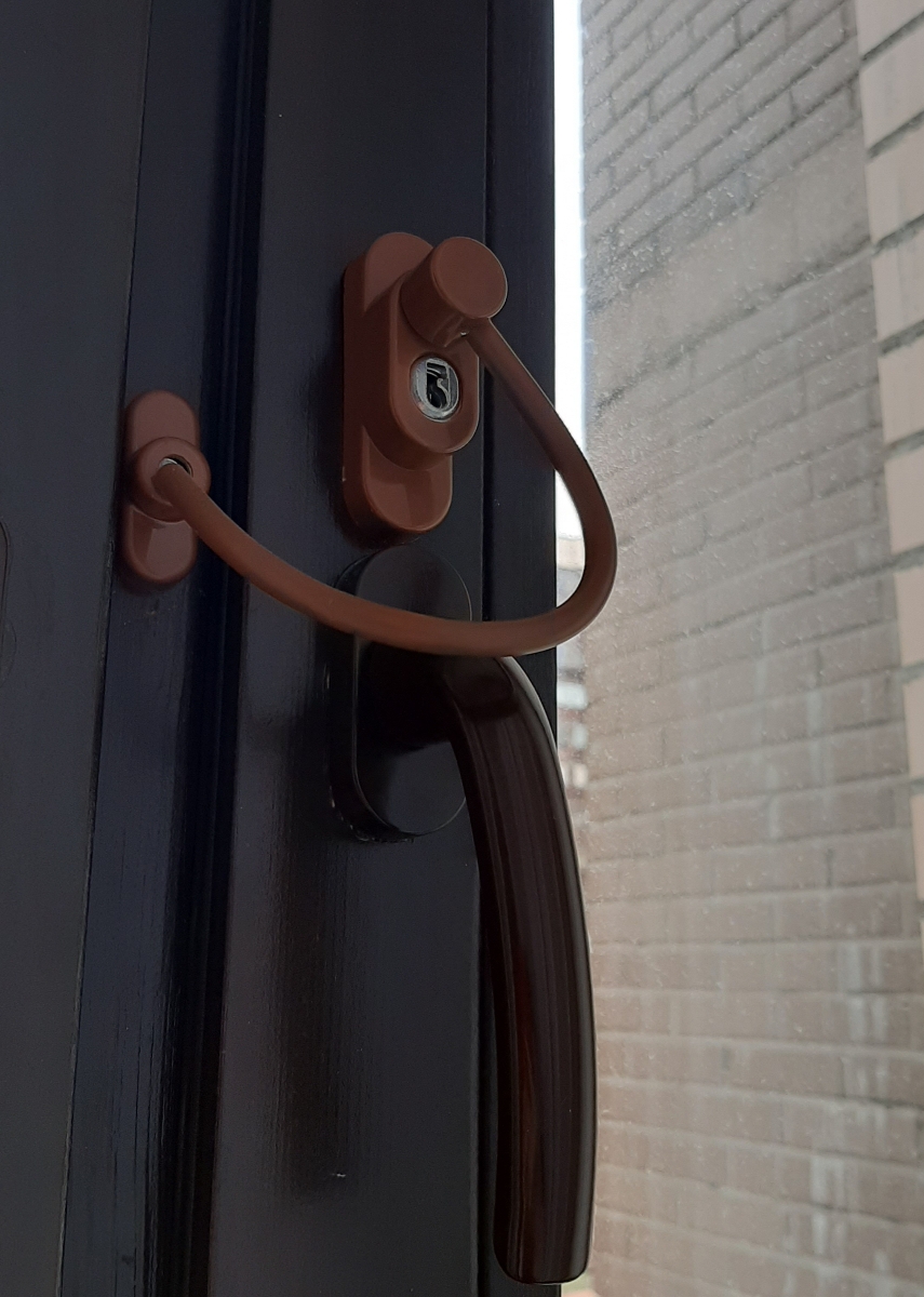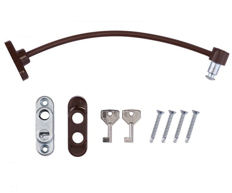 Замок/блокиратор детский на пластиковое окно от детей Gektor, с ключом, цвет коричневый