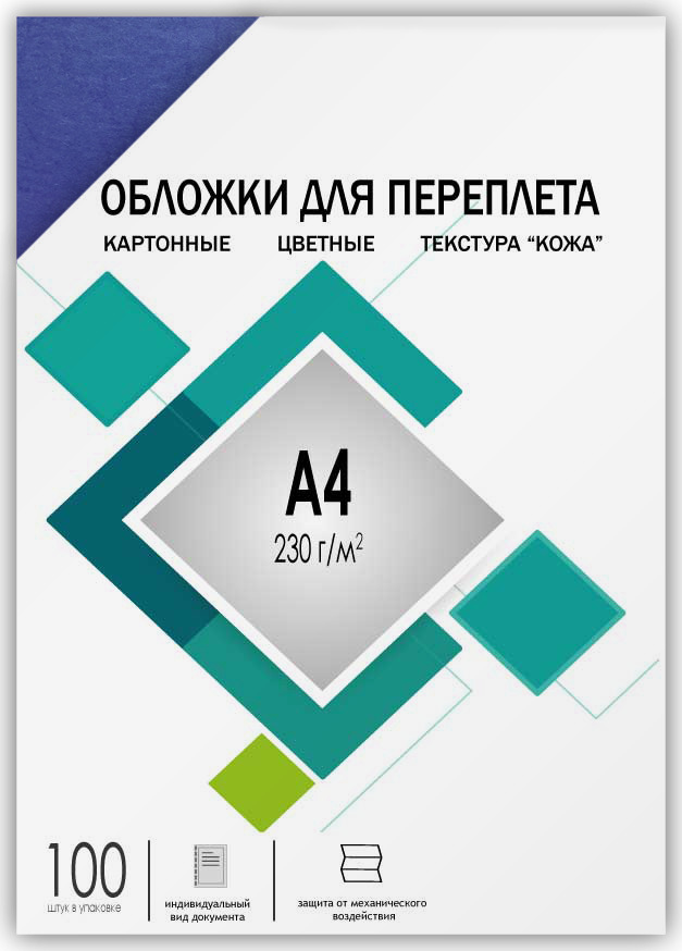 Обложки для переплета Гелеос, А4, тиснение под "кожу", синие , 100 шт.