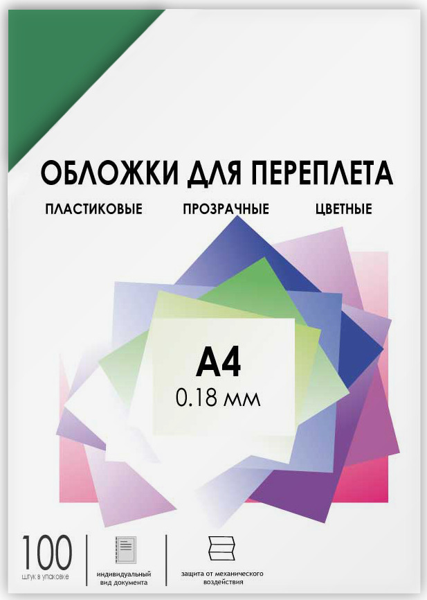 Обложки для переплета Гелеос А4 "кожа", зеленые, 100 шт.