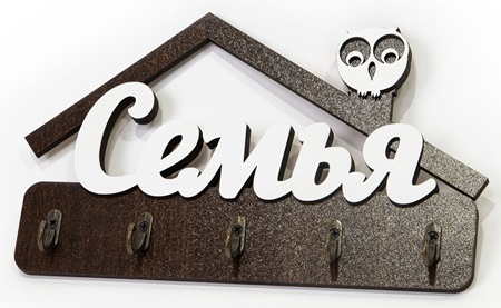 Ключница настенная Гений "Дом 25*15 см Семья Совушка 5 крючков" с 5 крюч.