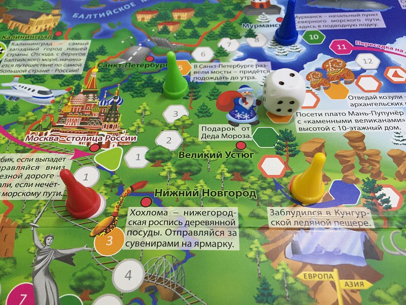 Игра-ходилка ГЕОДОМ Путешествие по России, с фишками, игровое поле 59 х 42 см